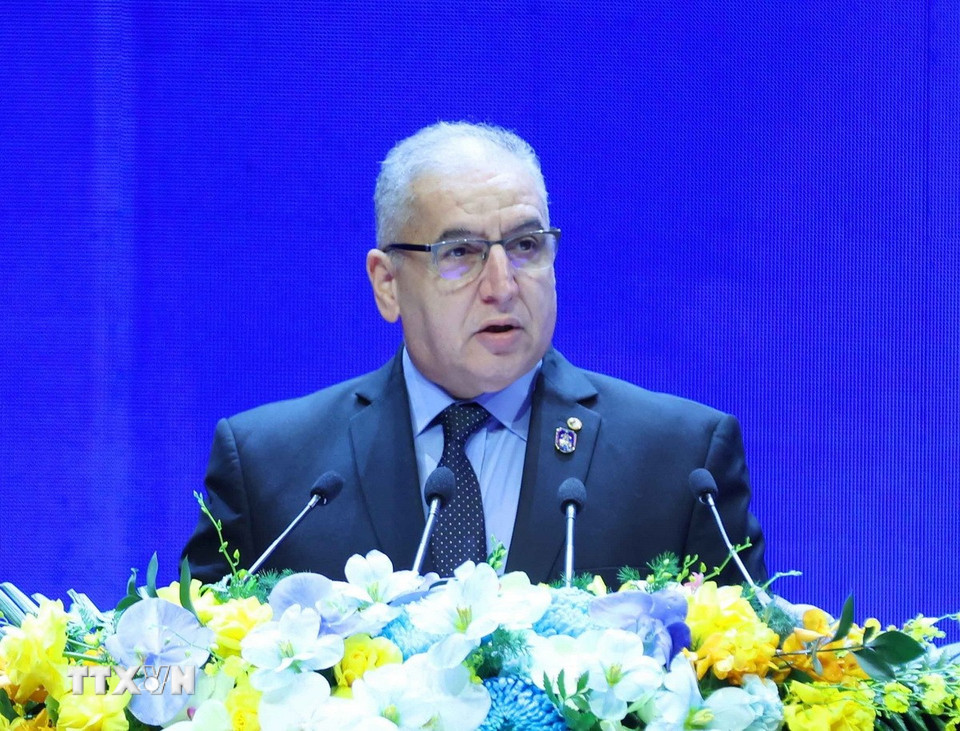 Tổng Thư ký Bộ Ngoại giao, Cộng đồng Quốc gia ở nước ngoài và Các vấn đề châu Phi của Cộng hòa Dân chủ Nhân dân Algeria Lounes Magramane phát biểu tại Phiên thảo luận. (Ảnh: Phương Hoa/TTXVN)
