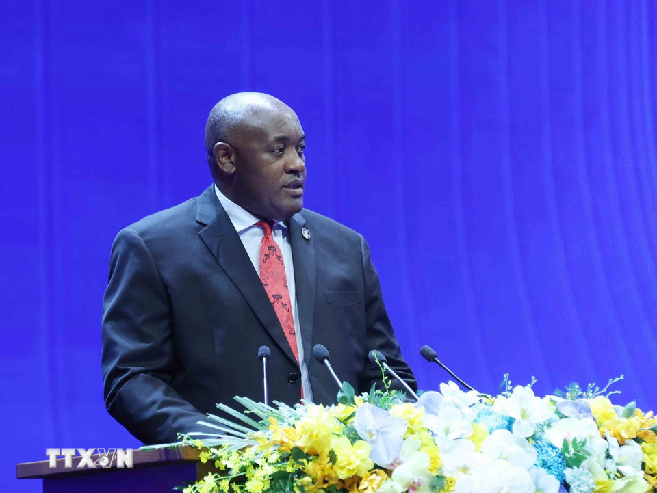 Bộ trưởng Bộ Nội vụ Cộng hòa Mozambique Paulo Chachine phát biểu tại Phiên thảo luận. (Ảnh: Phương Hoa/ TTXVN)