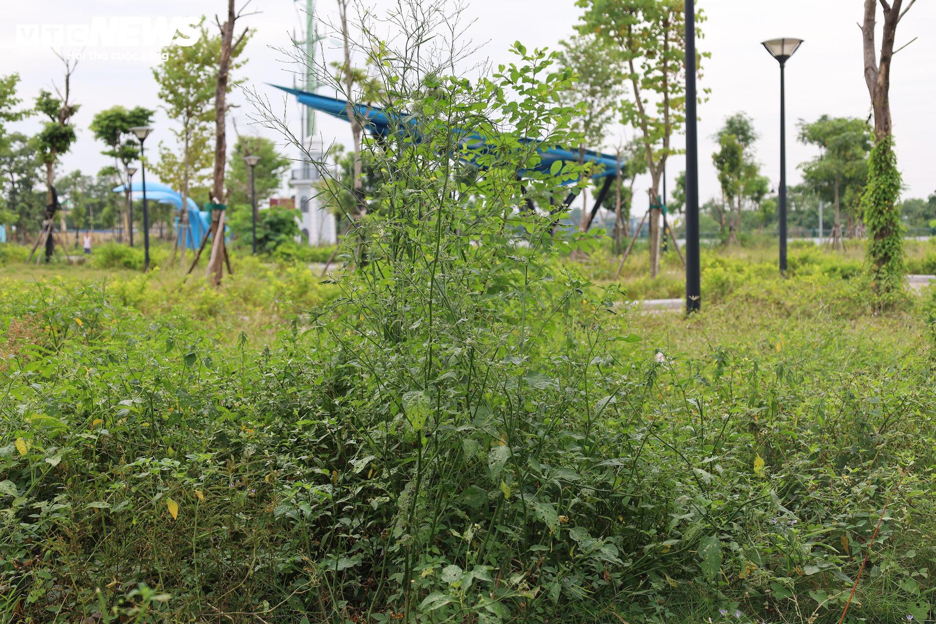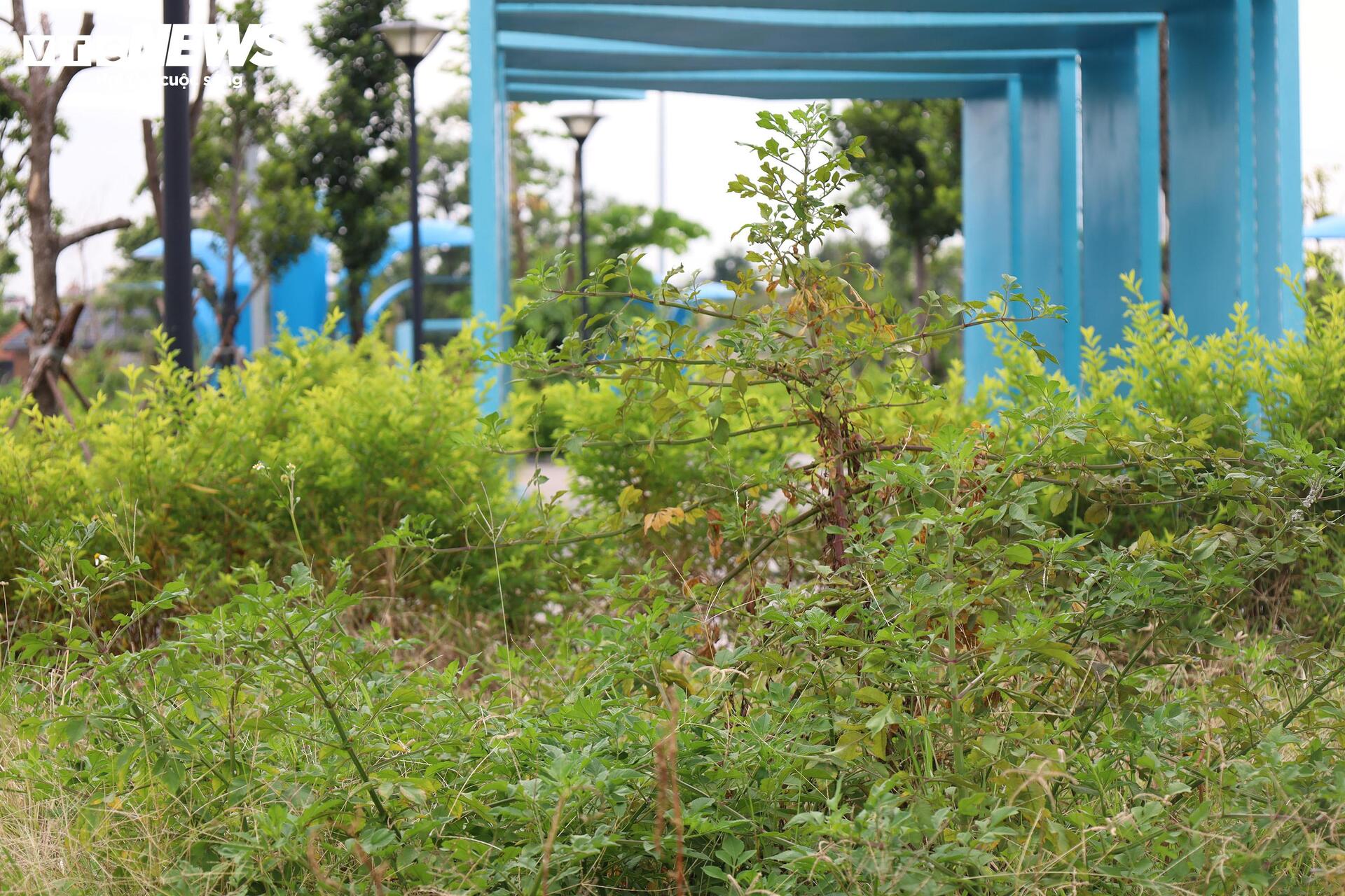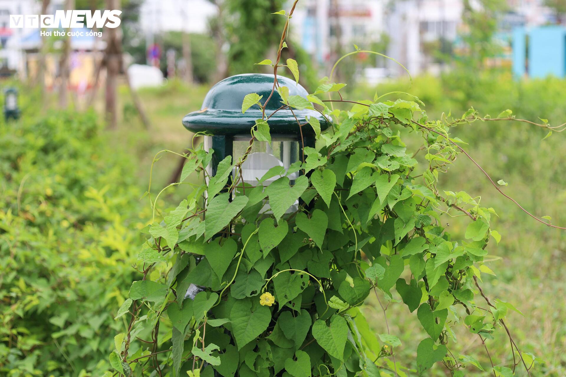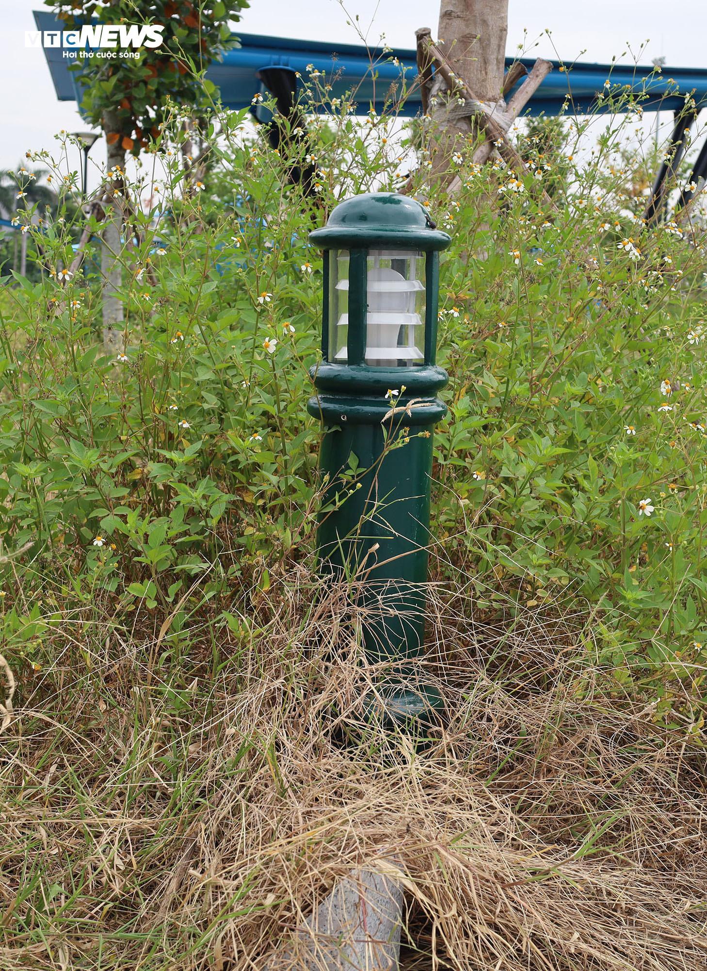Hệ thống cây xanh, thảm cỏ không được cắt tỉa, gây mất mỹ quan. Cỏ dại mọc um tùm che khuất cả hệ thống đèn trang trí chiếu sáng.