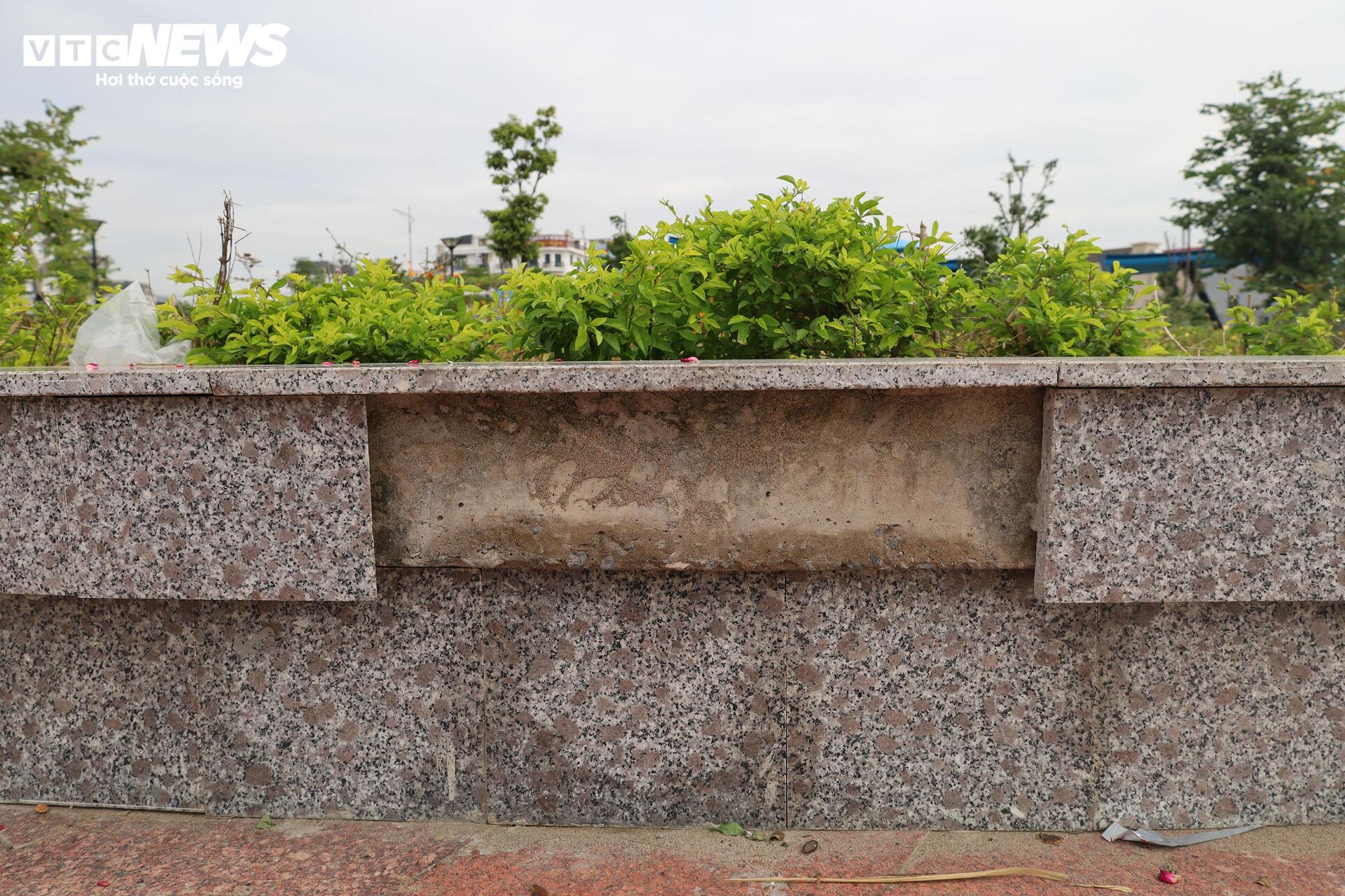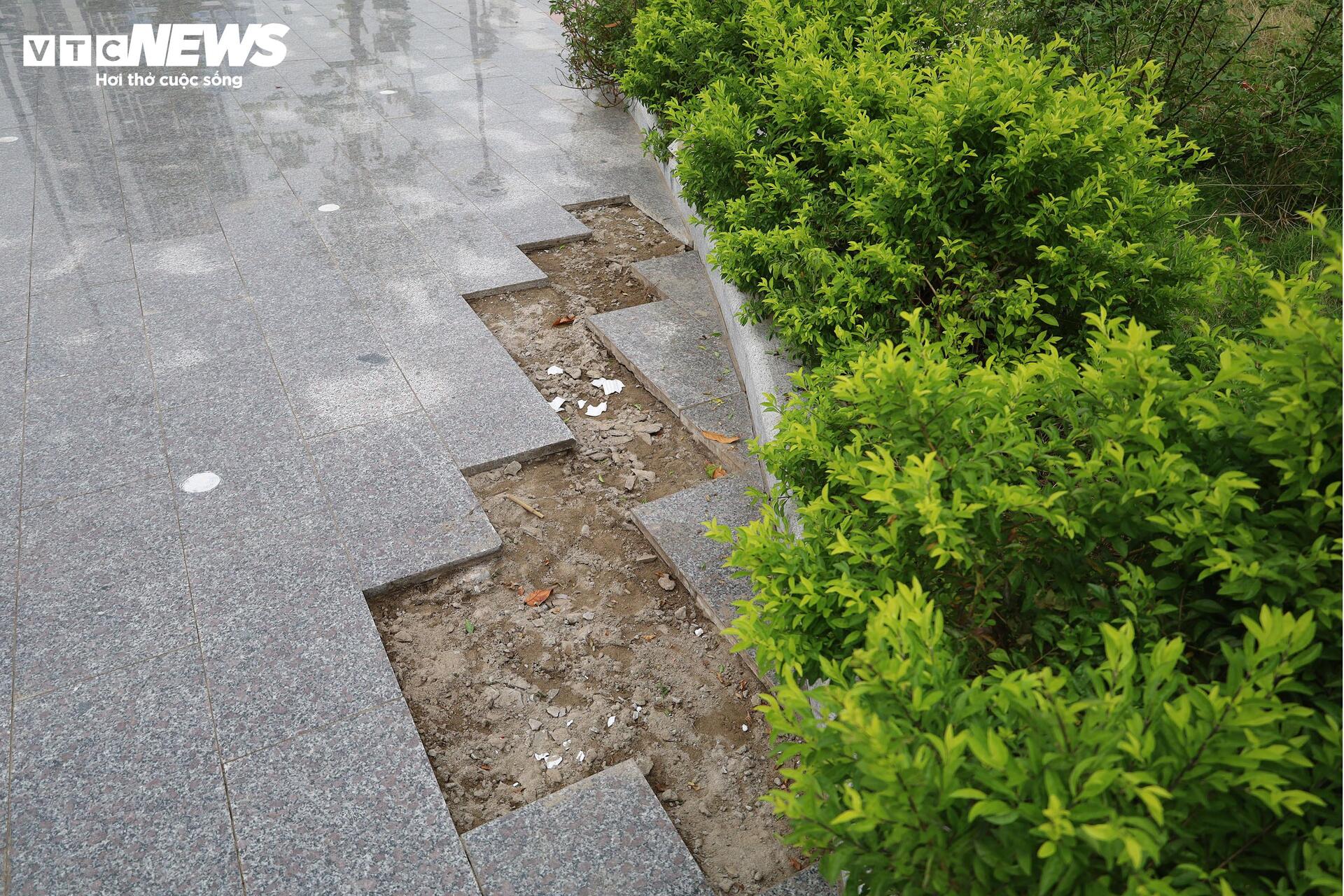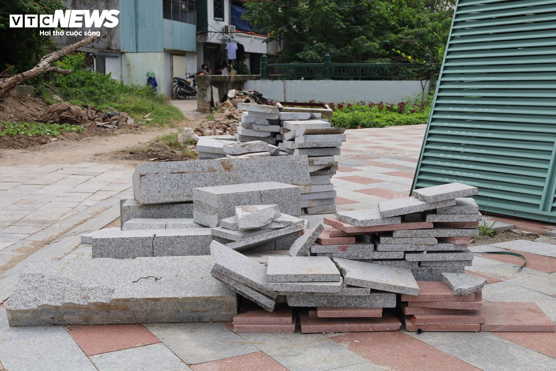 Dù mới đi vào hoạt động hơn 5 tháng nhưng gạch đá bị bong, vỡ ở nhiều vị trí. Nhiều điểm thi công dở dang, vật liệu vứt bừa bãi.