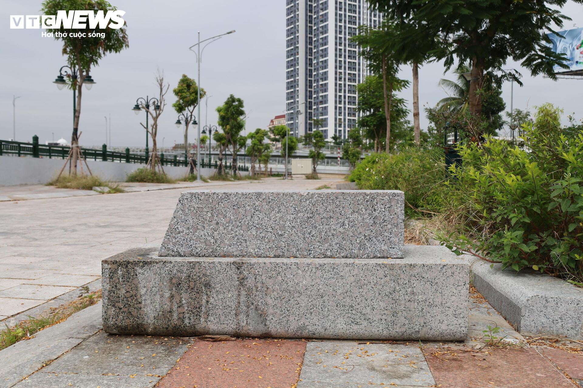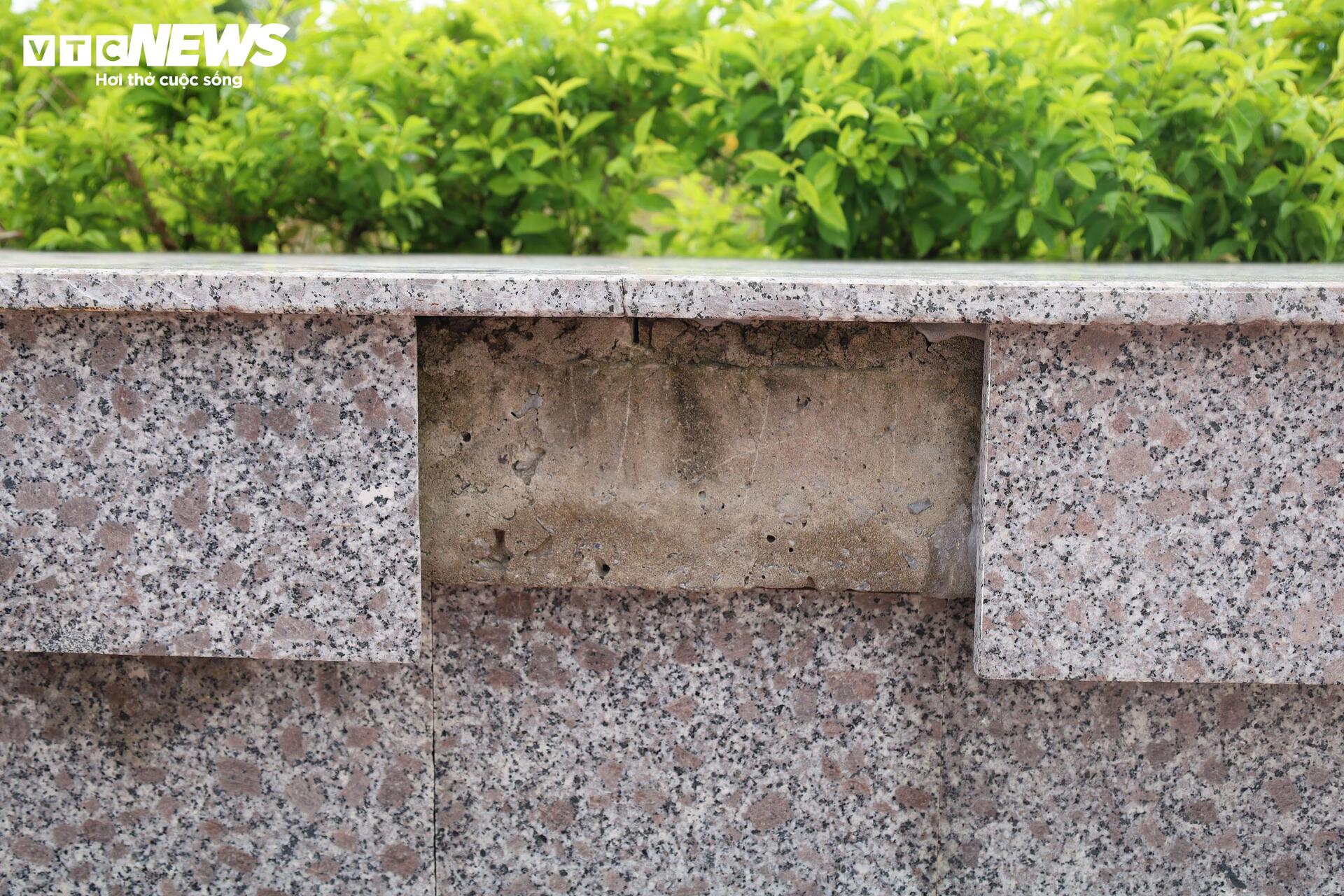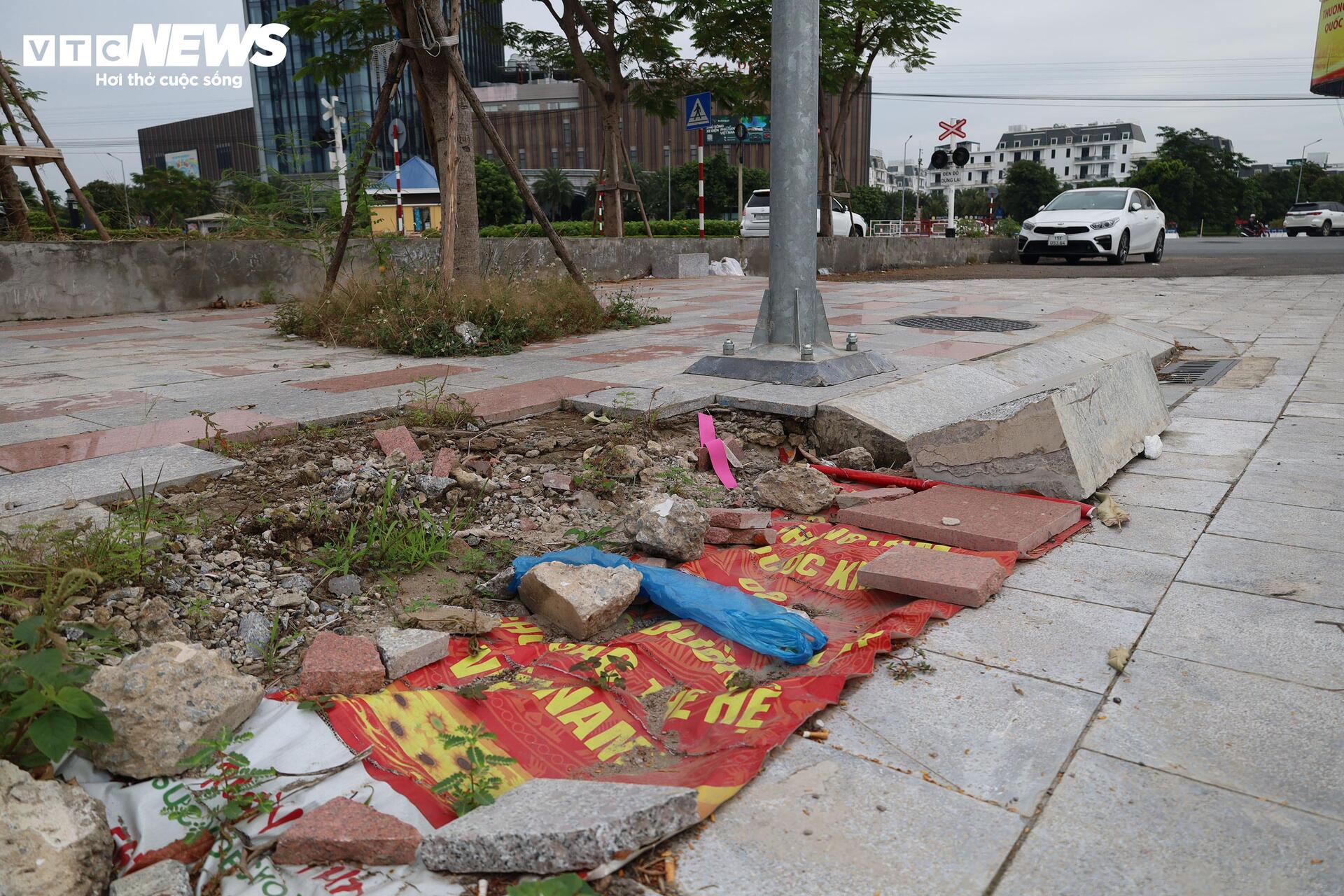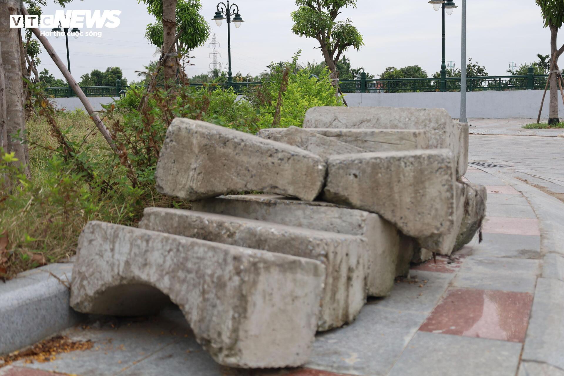 Dù mới đi vào hoạt động hơn 5 tháng nhưng gạch đá bị bong, vỡ ở nhiều vị trí. Nhiều điểm thi công dở dang, vật liệu vứt bừa bãi.