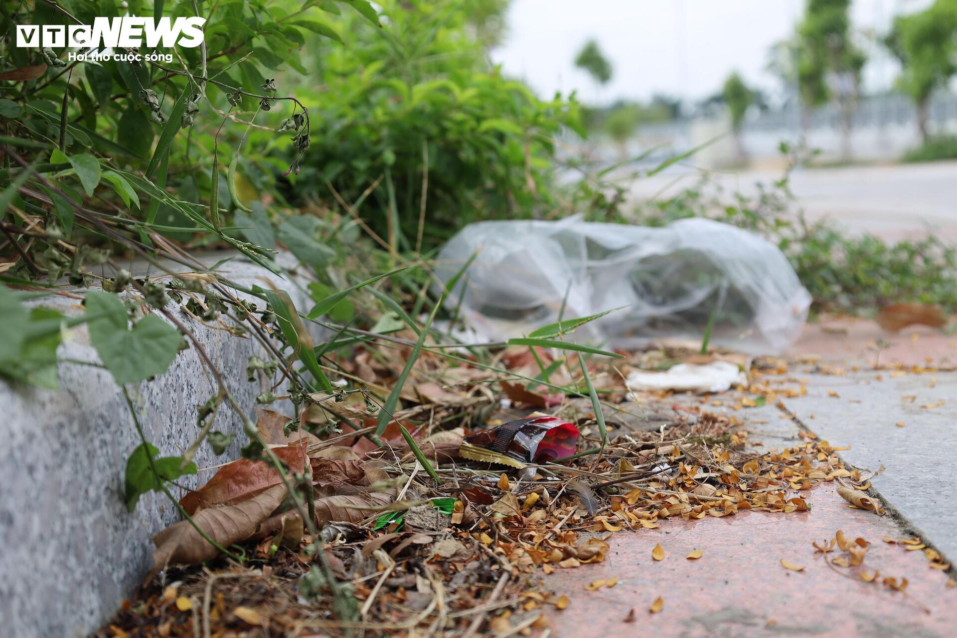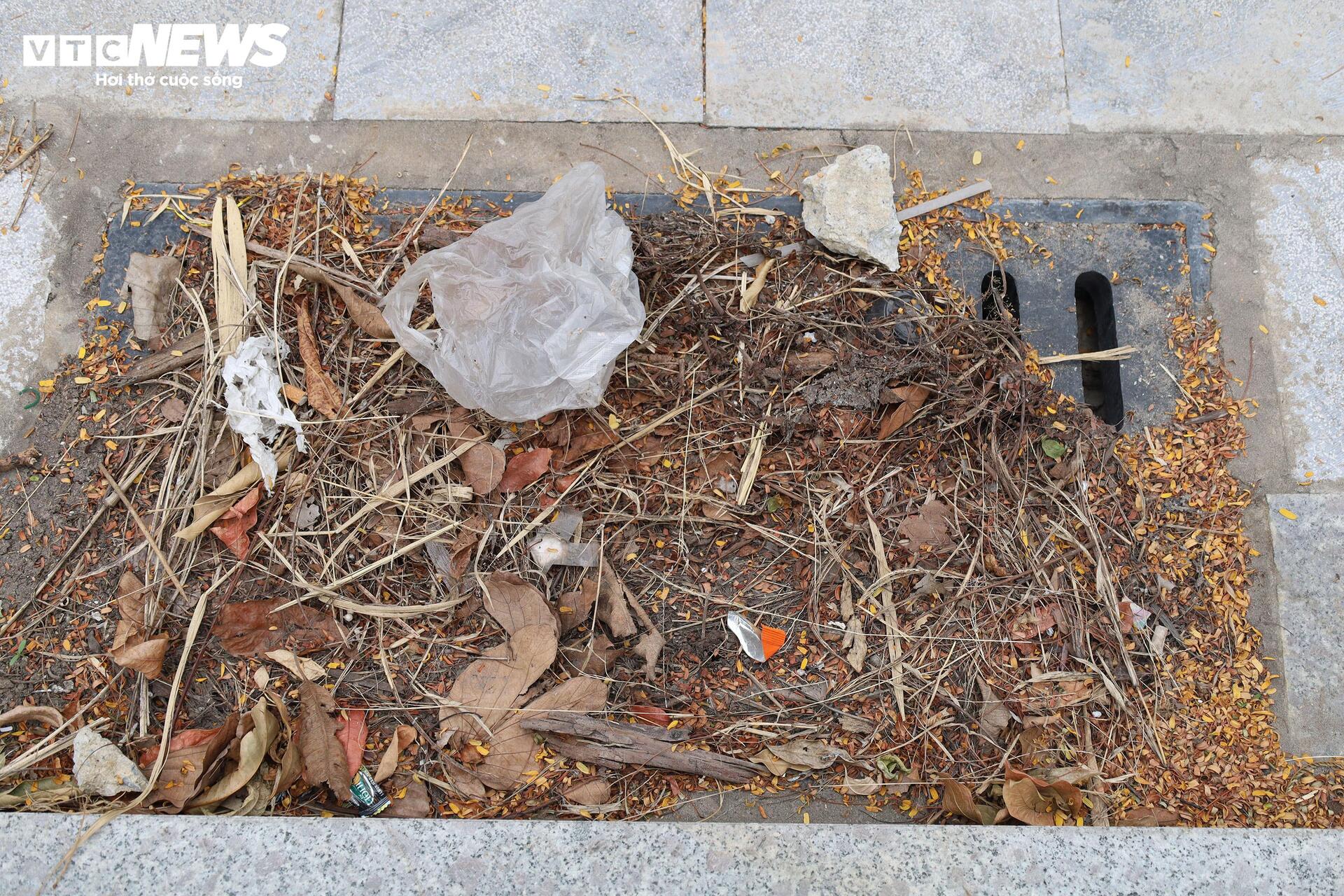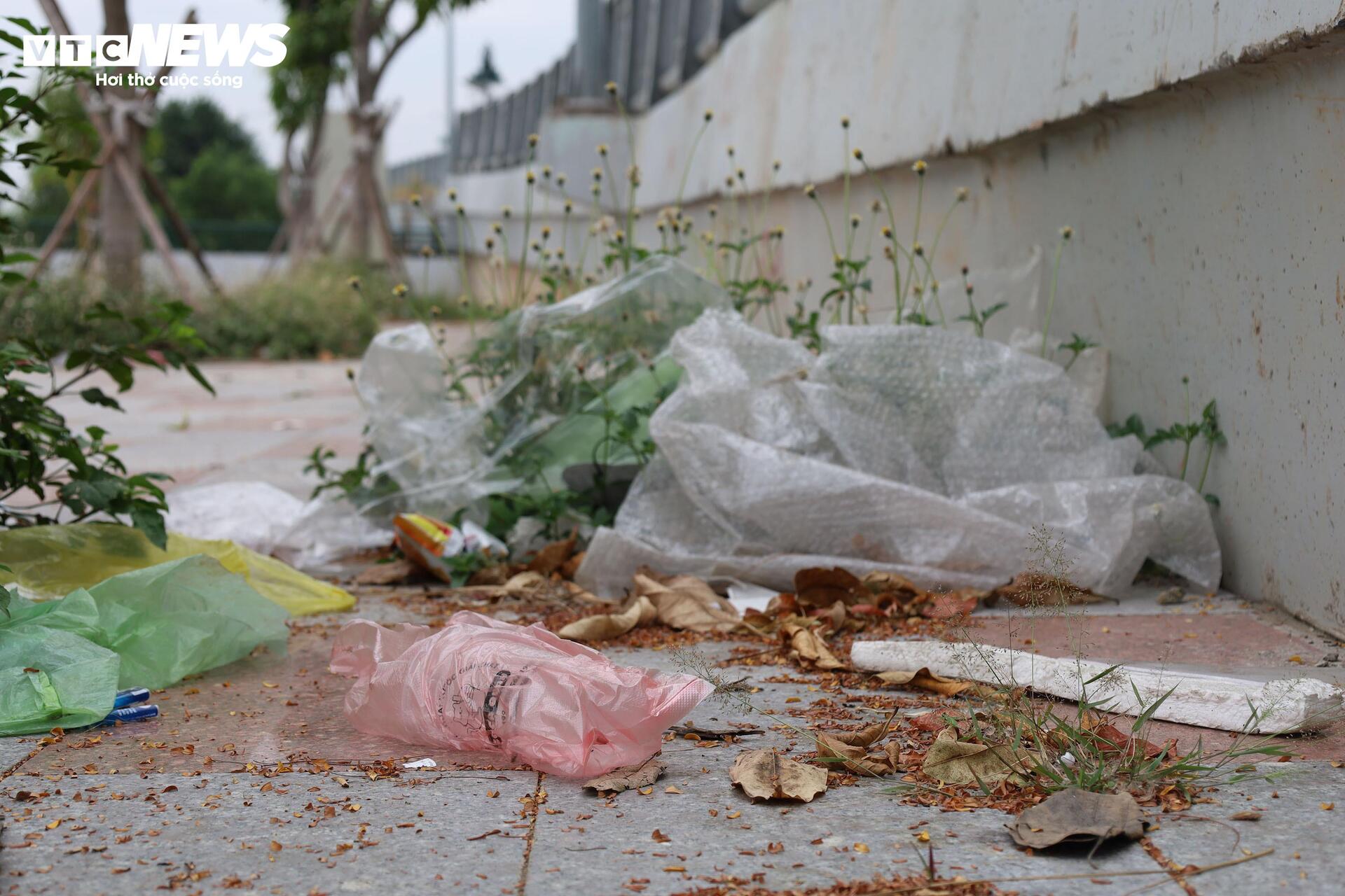 Rác thải, vỏ chai, túi nylon, lá rụng không được dọn dẹp, ngổn ngang ở các bồn cây, lối đi, tạo nên khung cảnh nhếch nhác ở công viên gần 135 tỷ đồng.