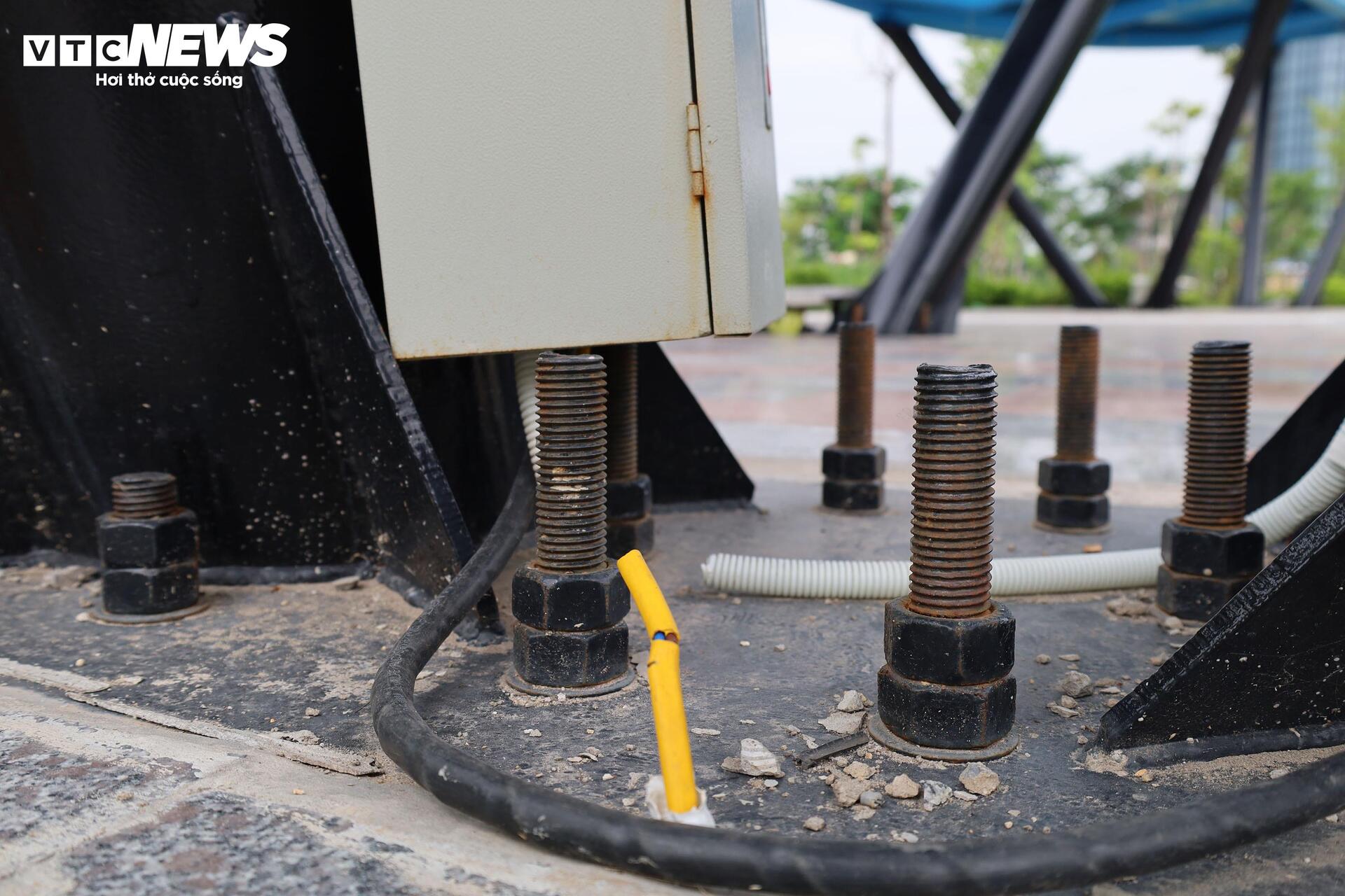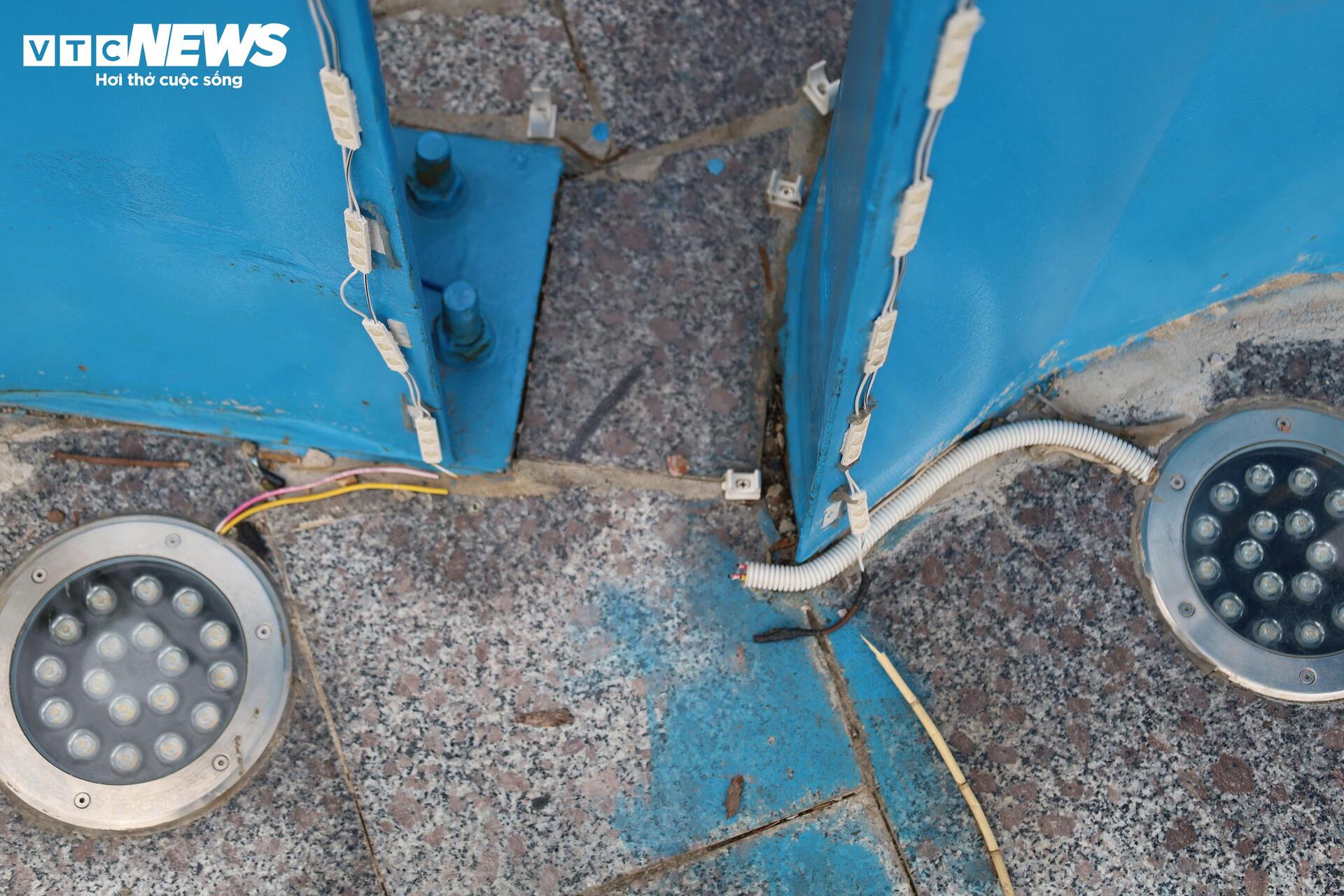 "Ngọn hải đăng" xuất hiện nhiều vết nứt, hệ thống điện trang trí cũng bị đứt, hở mạch điện.