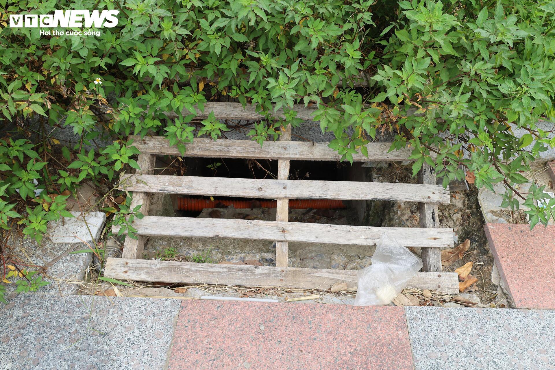 Nhiều hố ga thoát nước bị mất nắp hoặc bị rác thải phủ kín. Có chỗ còn dùng thanh gỗ đóng tạm bợ thay thế nắp cống.