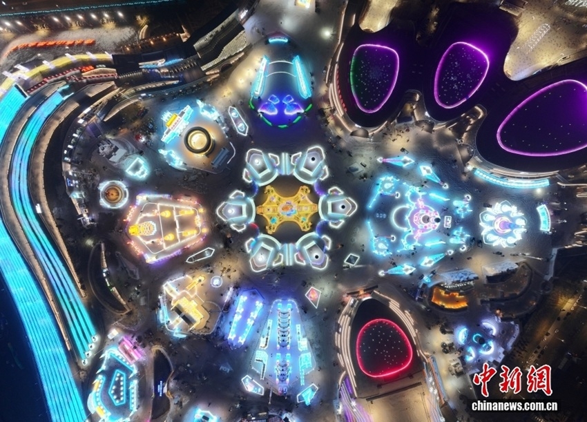Công viên băng tuyết Cáp Nhĩ Tân về đêm. Ảnh: China News