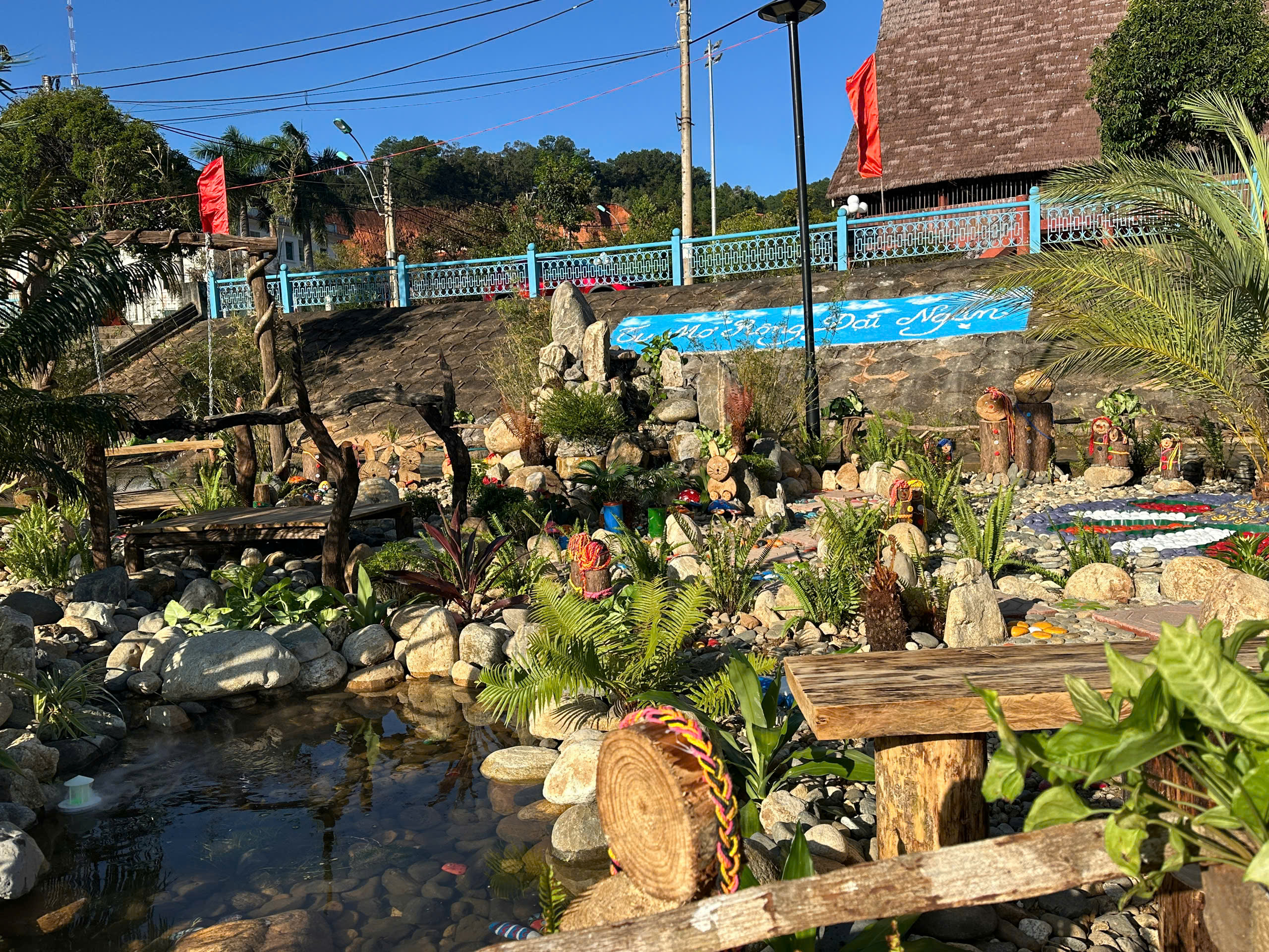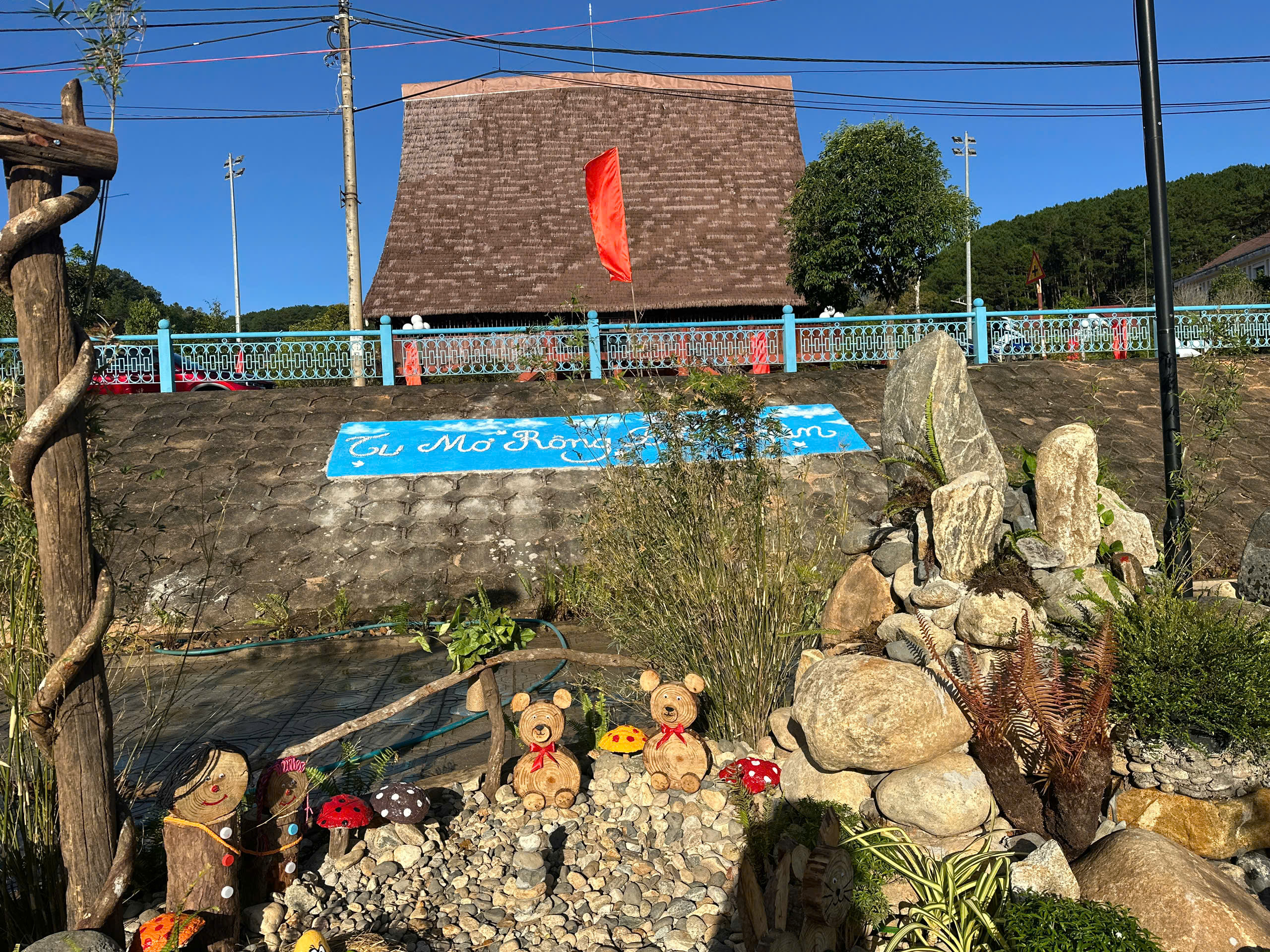 Nhà rông, nhà sàn của đồng bào Xơ Đăng được các giáo viên mô phỏng xây dựng