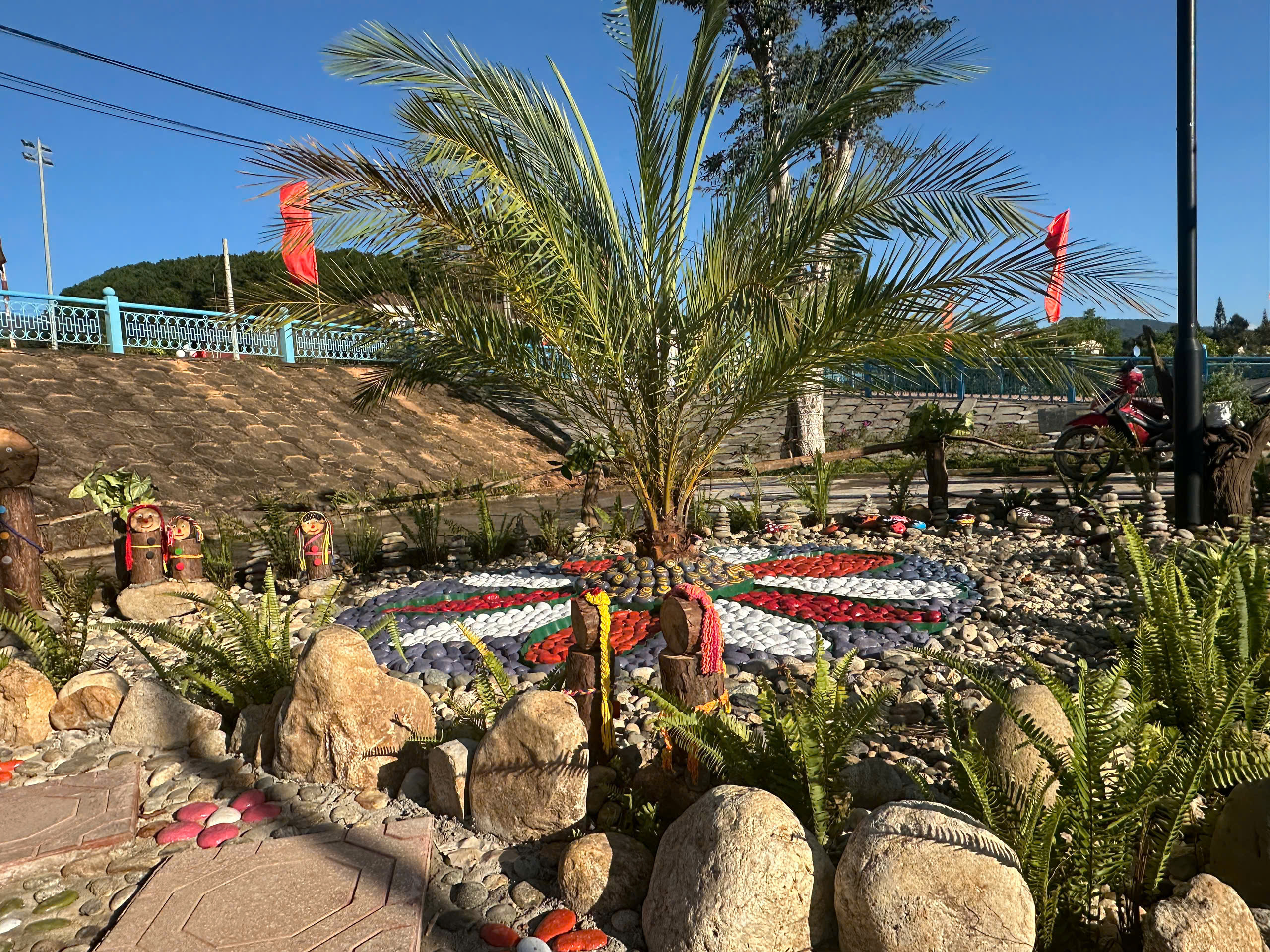 Để triển khai, các đội nhặt đá, dùng gỗ khô vẽ tranh và thiết kế tác phẩm thành những bức tranh đá tuyệt đẹp.