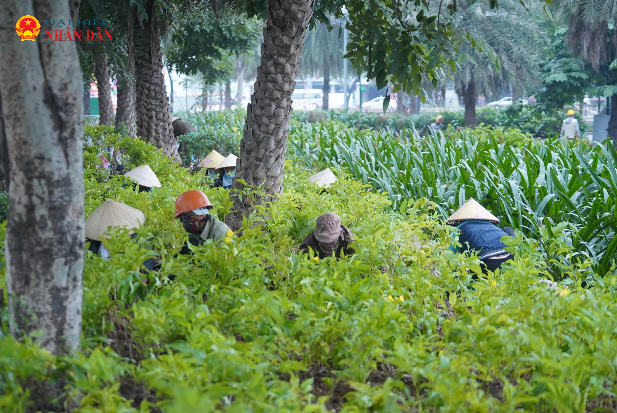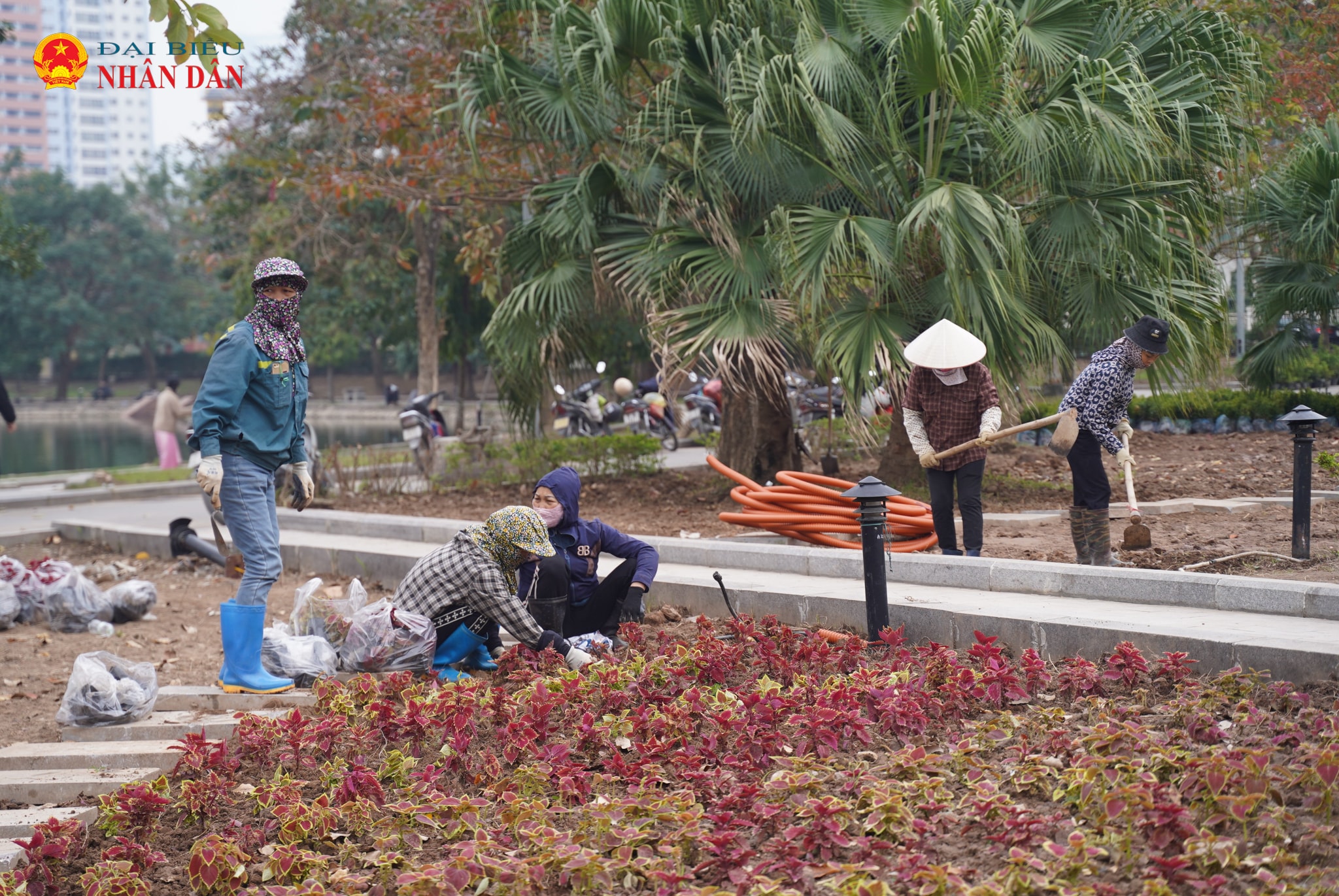 Công nhân tiến hành trồng hoa, cây cảnh "thay áo mới" cho công viên