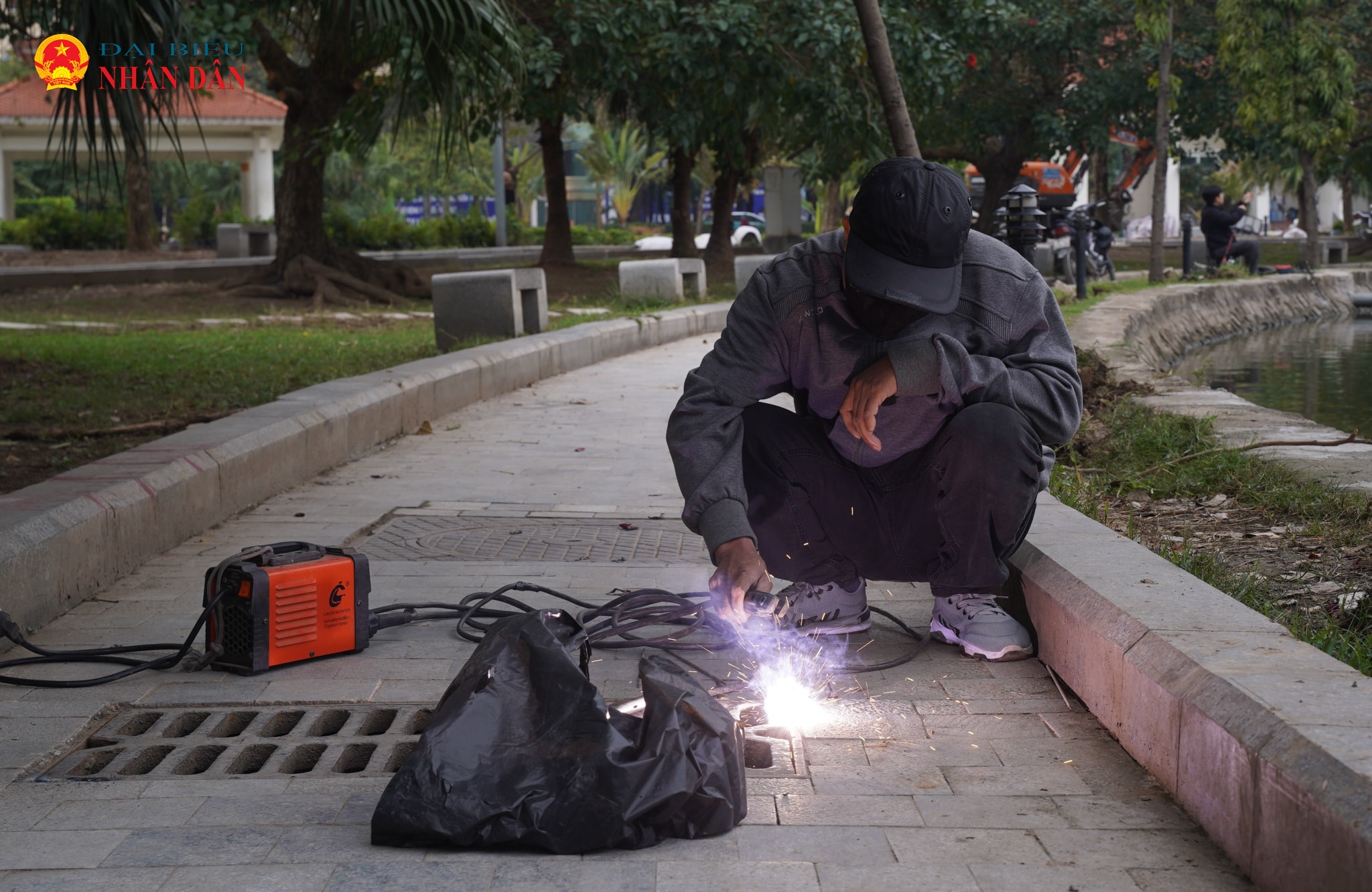 Công tác duy tu, sửa chữa được triển khai đồng loạt ở cả khu vực đường dạo, bồn hoa và thảm cỏ quanh hồ