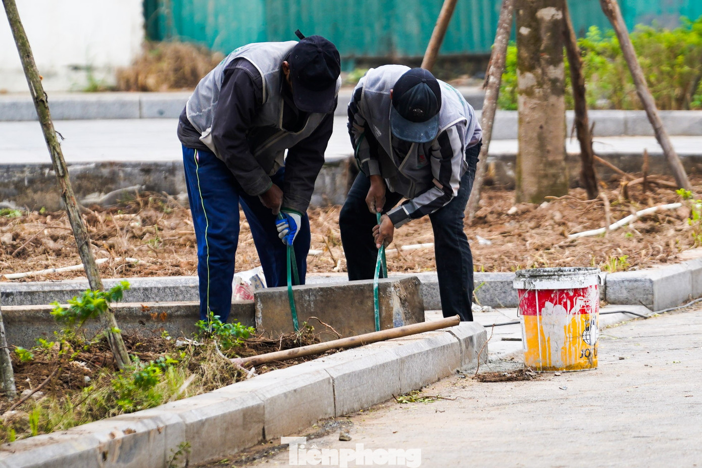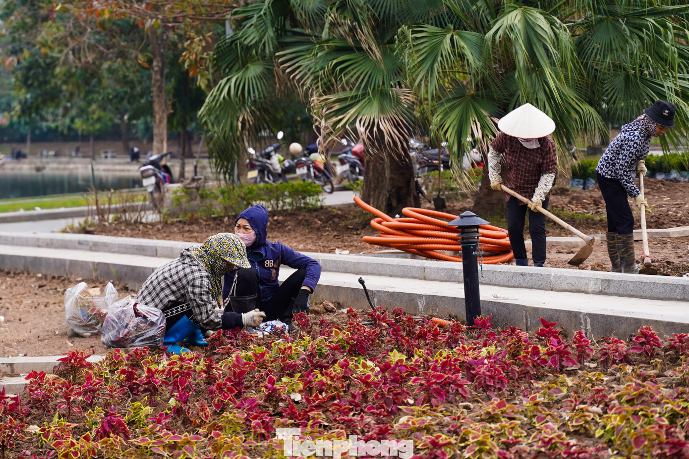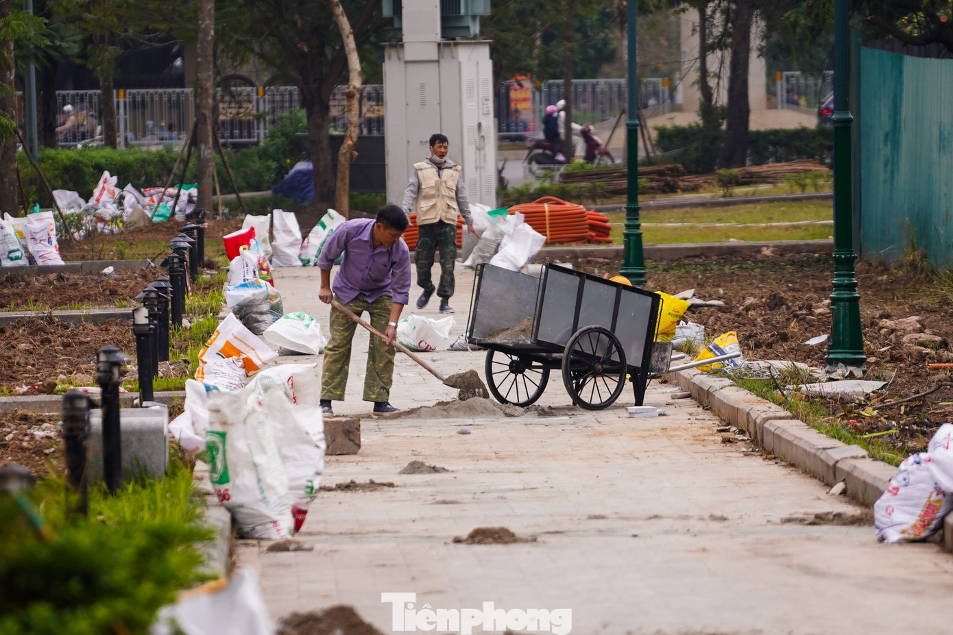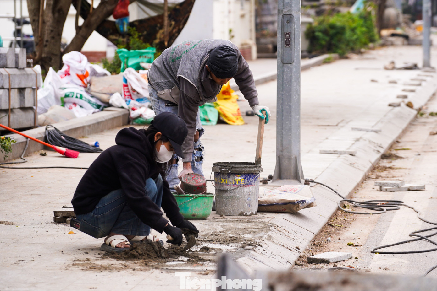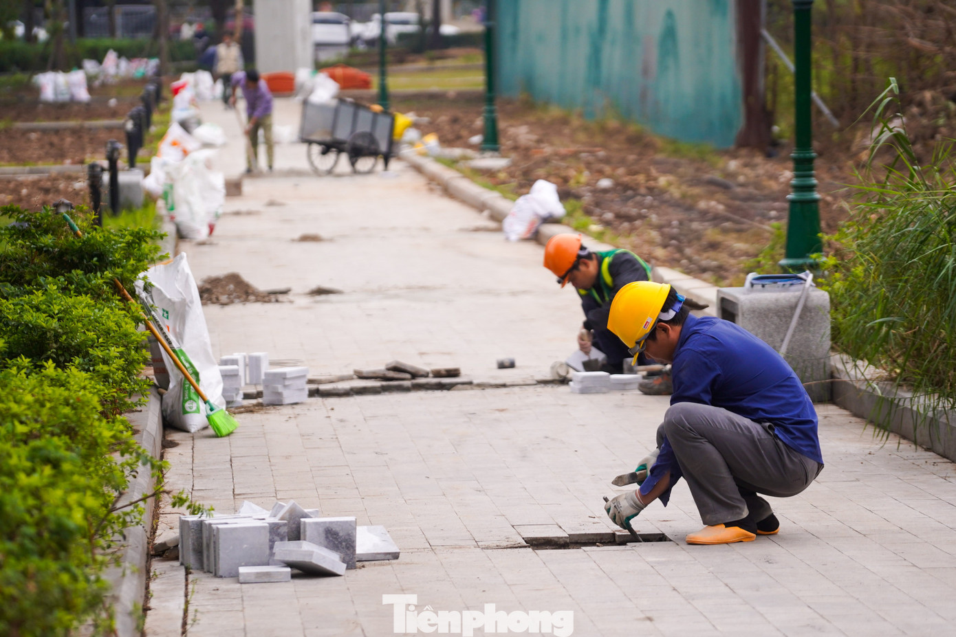 Nhiều đoạn gạch lát trong công viên bị nứt vỡ, xuống cấp được công nhân cải tạo, thay mới nhằm bảo đảm an toàn cho người đi bộ.