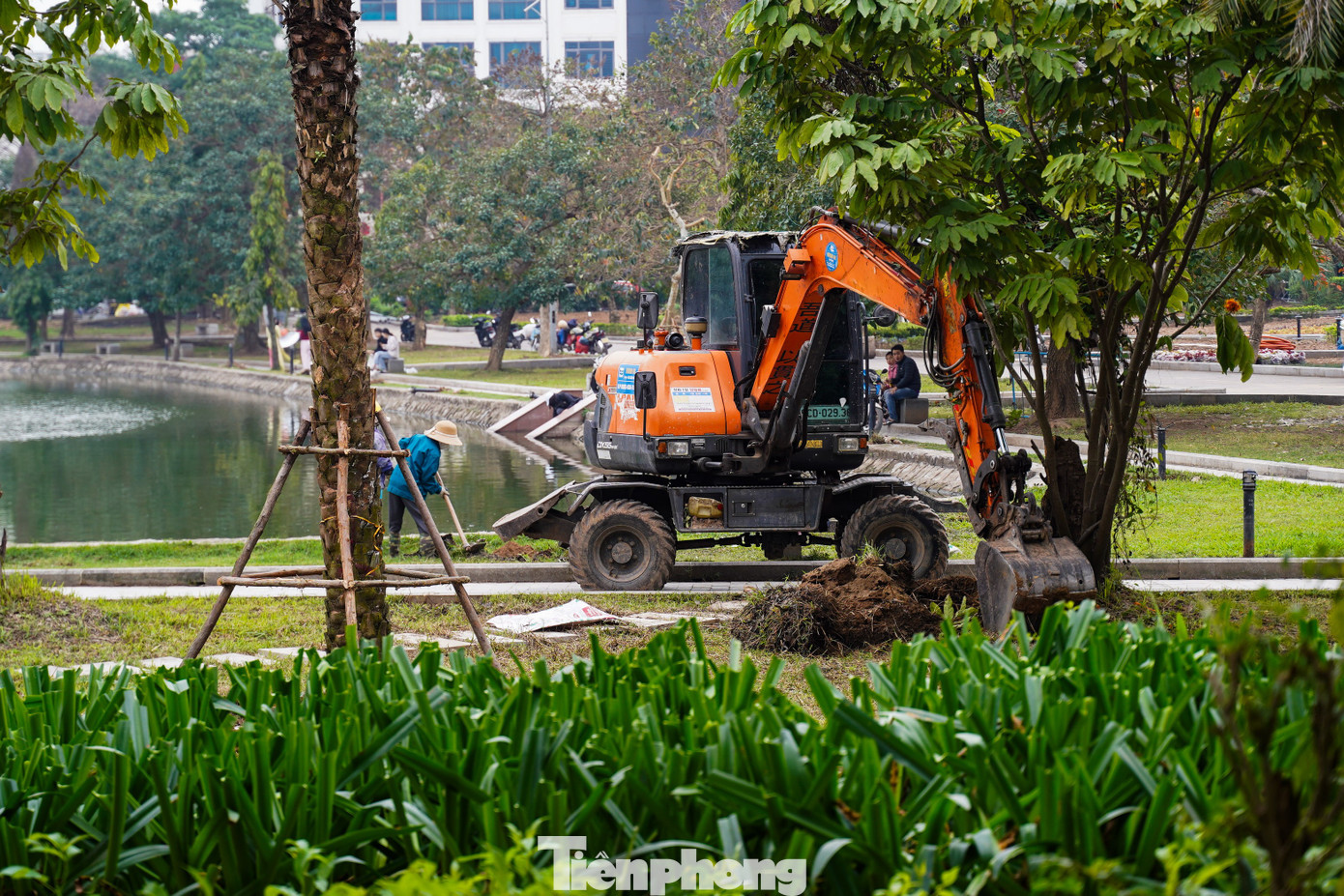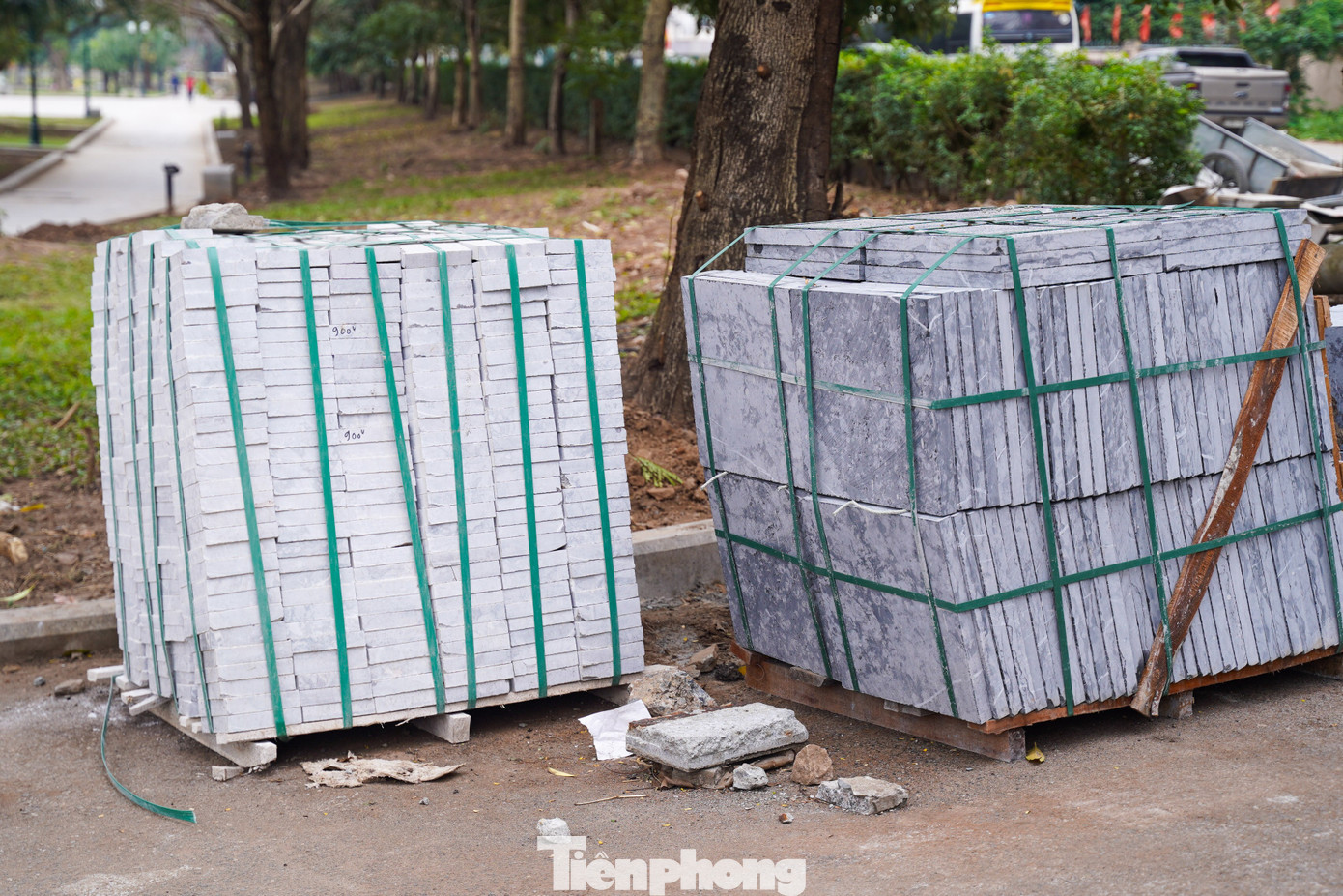 Máy móc, vật liệu xây dựng được tập kết quanh công viên nhằm đẩy nhanh tiến độ thi công các hạng mục.