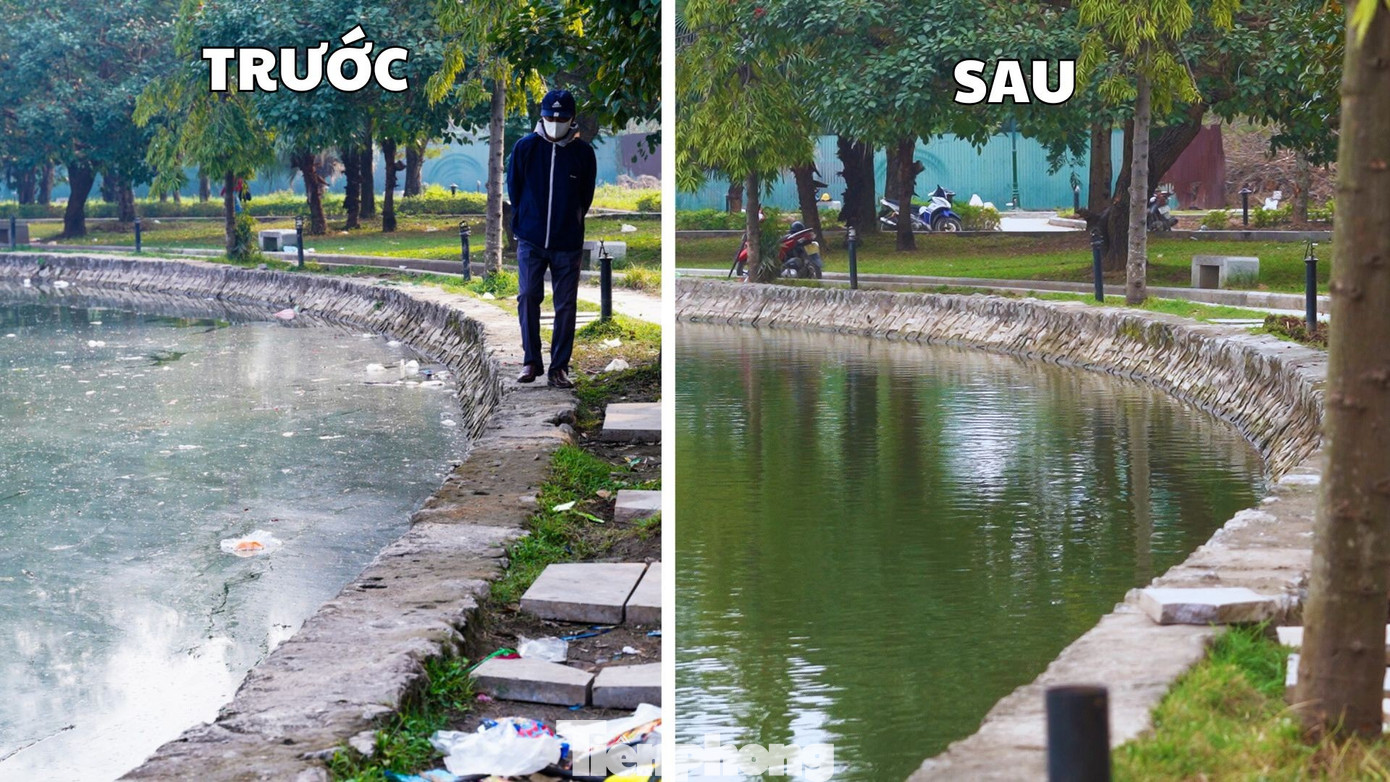 Sau khi được vệ sinh, mặt nước quanh hồ đã trở nên sạch sẽ hơn.