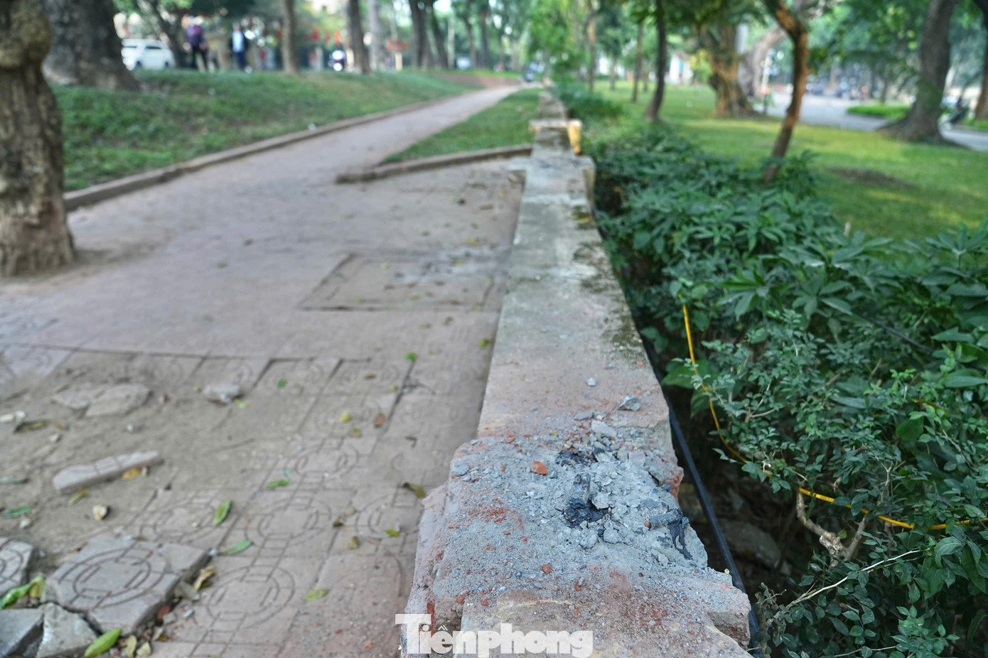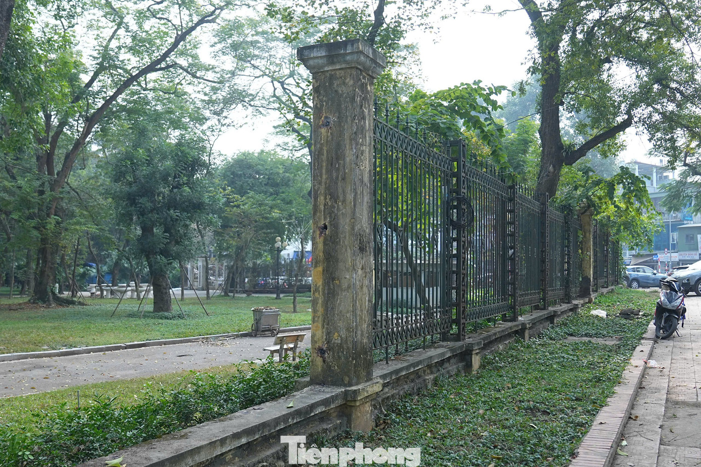 Trước đó, tường rào ngăn cách giữa công viên với các khu vực lân cận đã có dấu hiệu rêu mốc, bong tróc sơn bê tông; các trụ sắt và hàng rào sắt hầu hết đã bị rỉ sét, bong tróc, một số đoạn đã bị hỏng hóc.