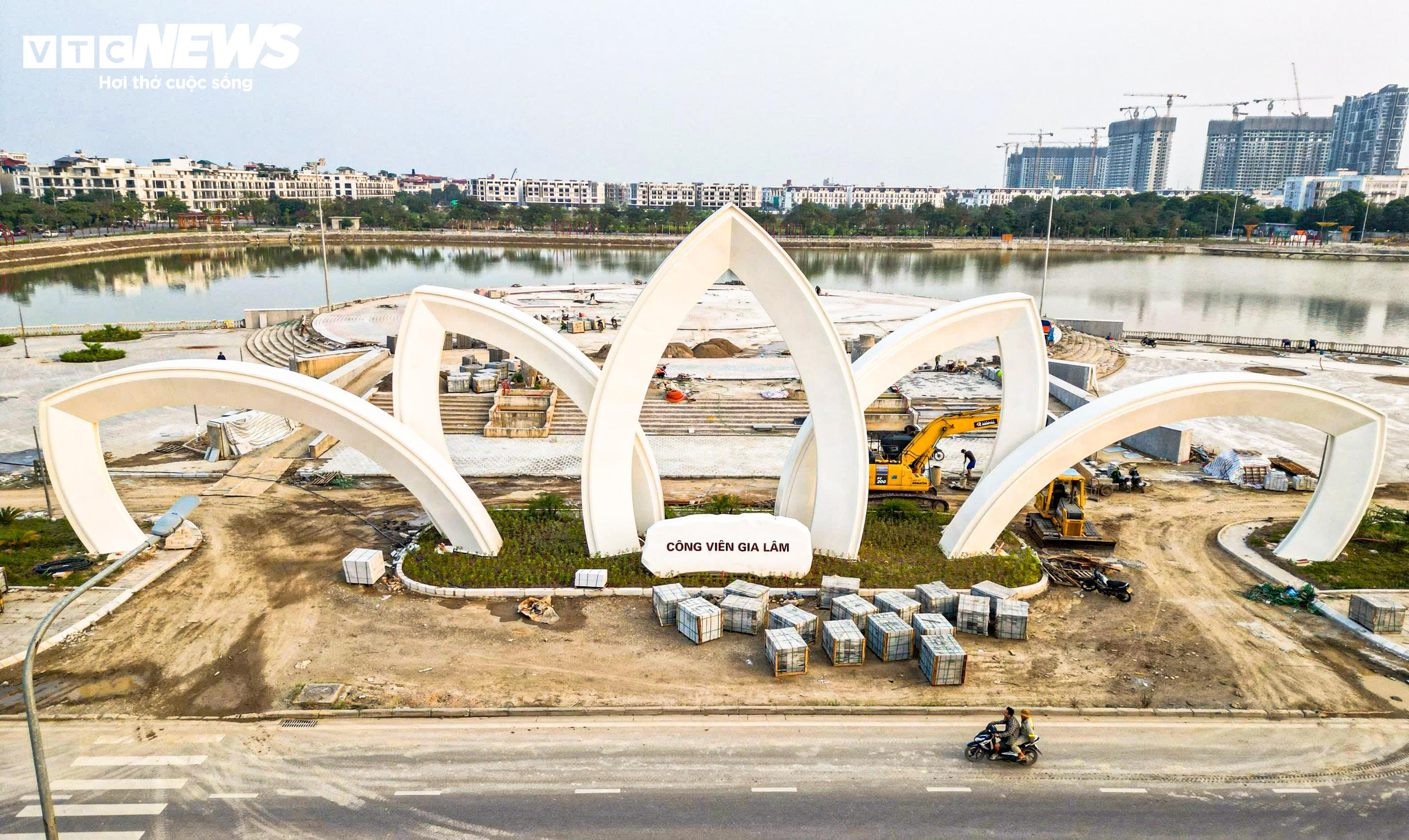 Điểm nhấn nổi bật của công viên Gia Lâm là cổng chào được thiết kế theo hình hoa sen 5 cánh với kích thước lớn. Công trình này không chỉ đóng vai trò là lối vào chính mà còn mang ý nghĩa biểu tượng, gắn với hình ảnh văn hóa quen thuộc, tạo dấu ấn nhận diện cho toàn bộ khu công viên.