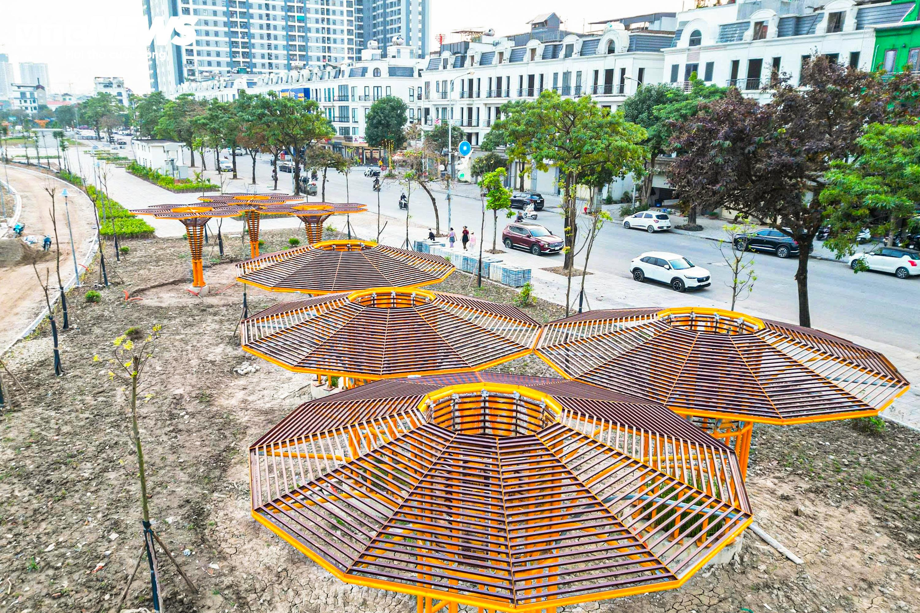 Hiện cổng hoa sen cơ bản hoàn thiện phần kết cấu, hình khối rõ ràng, thu hút sự chú ý của người dân mỗi khi đi ngang qua khu vực.