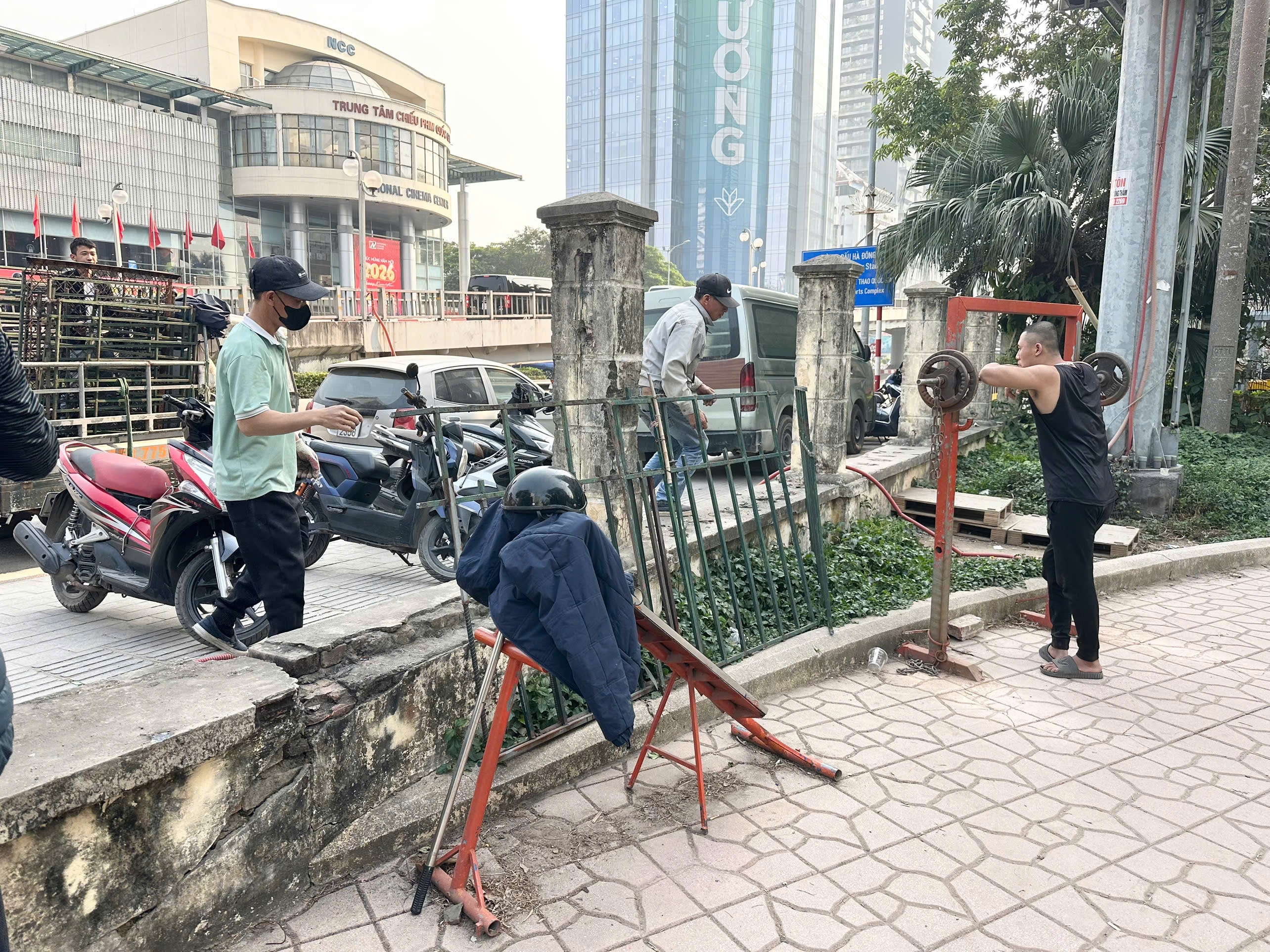 Những người thợ tiến hành tháo rỡ hàng rào, trả lại không gian "công cộng" đúng nghĩa.