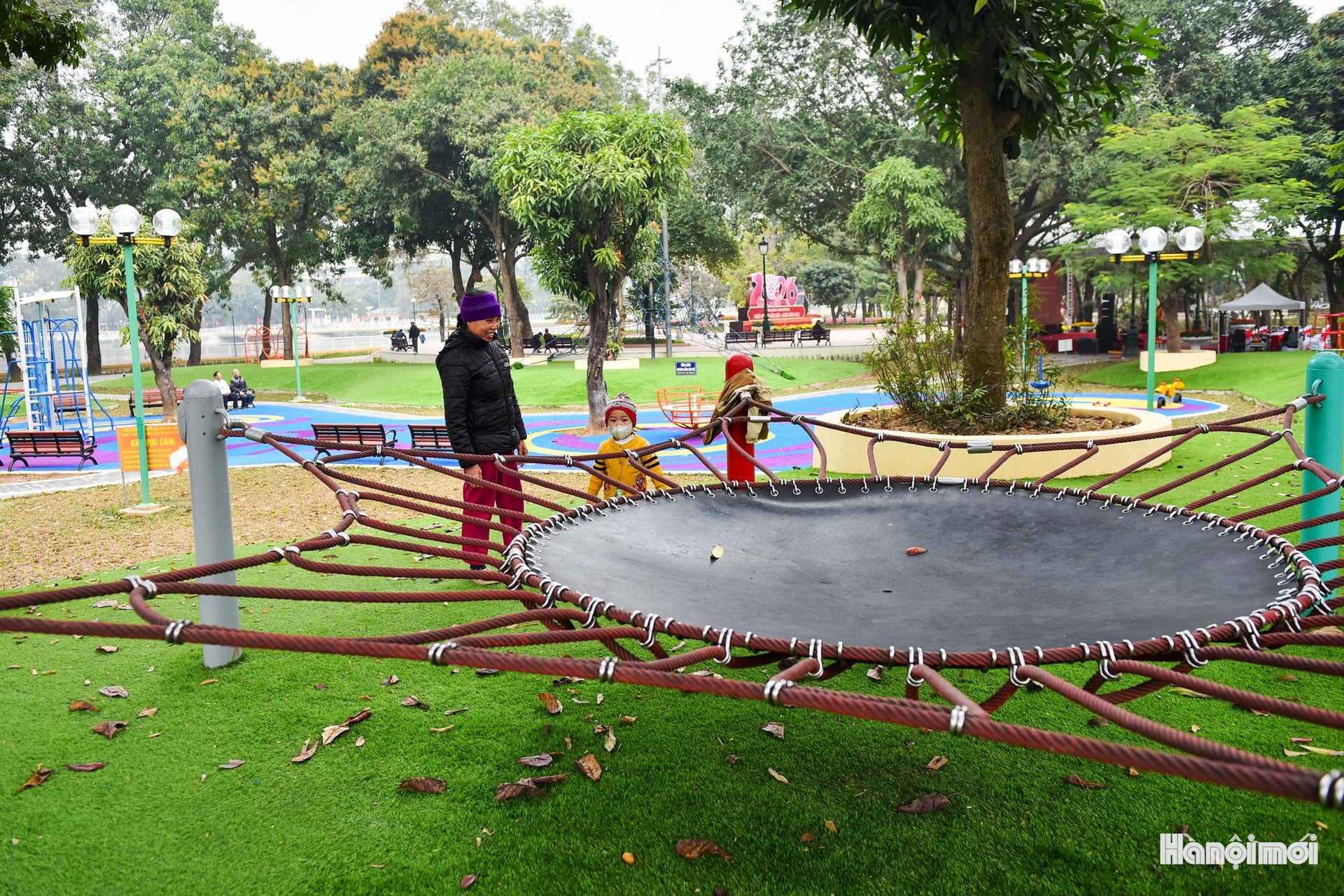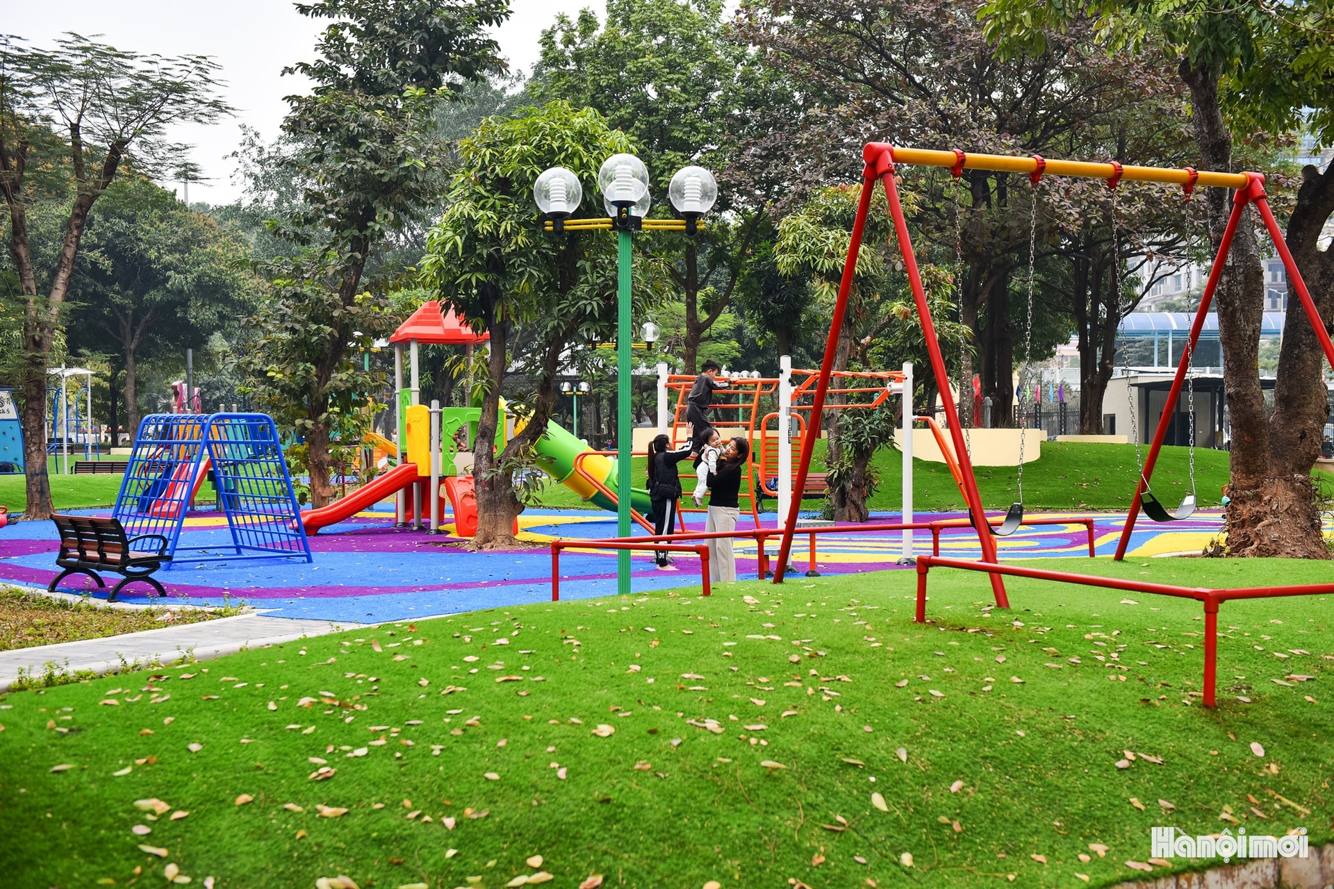 Tiếng cười trẻ thơ rộn ràng giữa không gian xanh, công viên Nghĩa Đô dần trở thành điểm hẹn quen thuộc của các gia đình.