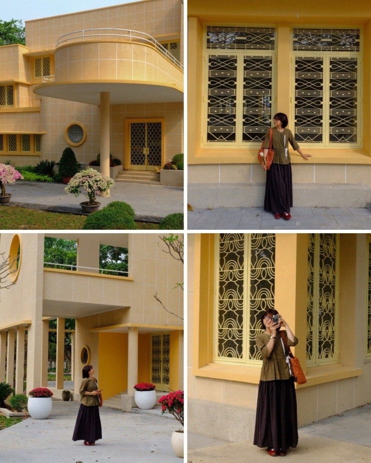 Khu vực tường vàng và các bậc thang phía trước biệt thự đã nhanh chóng trở thành bối cảnh yêu thích cho những bộ ảnh áo dài Tết. Dù là trang phục truyền thống, cách tân hay phong cách vintage, du khách đều dễ dàng tìm thấy những góc máy ấn tượng.