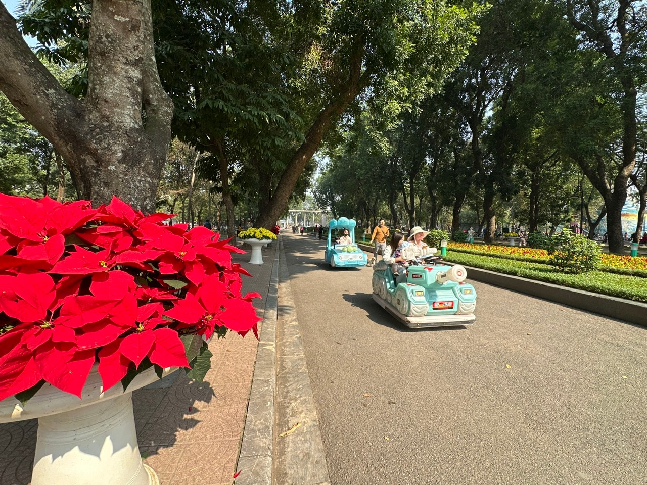 Công viên Thống Nhất được chỉnh trang, bổ sung thêm nhiều không gian hoa tươi, tạo không gian vui chơi thân thiện cho người dân và du khách. Ảnh: Hoàng Lân