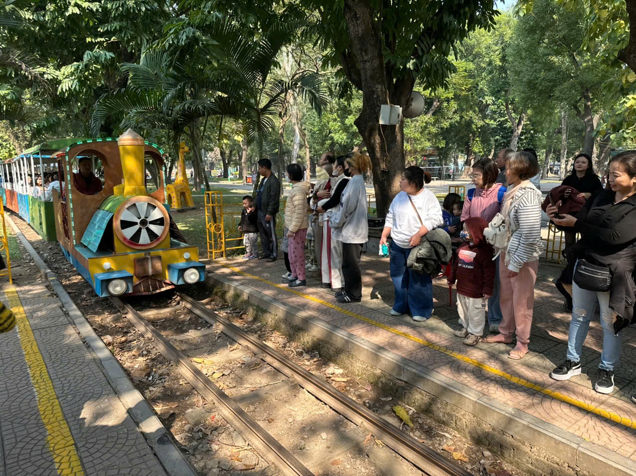 "Du lịch" quanh công viên bằng Đoàn tàu Thống Nhất. Du khách sẽ được chiêm ngưỡng toàn cảnh công viên. Ảnh: Hoàng Lân