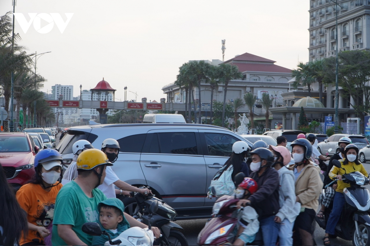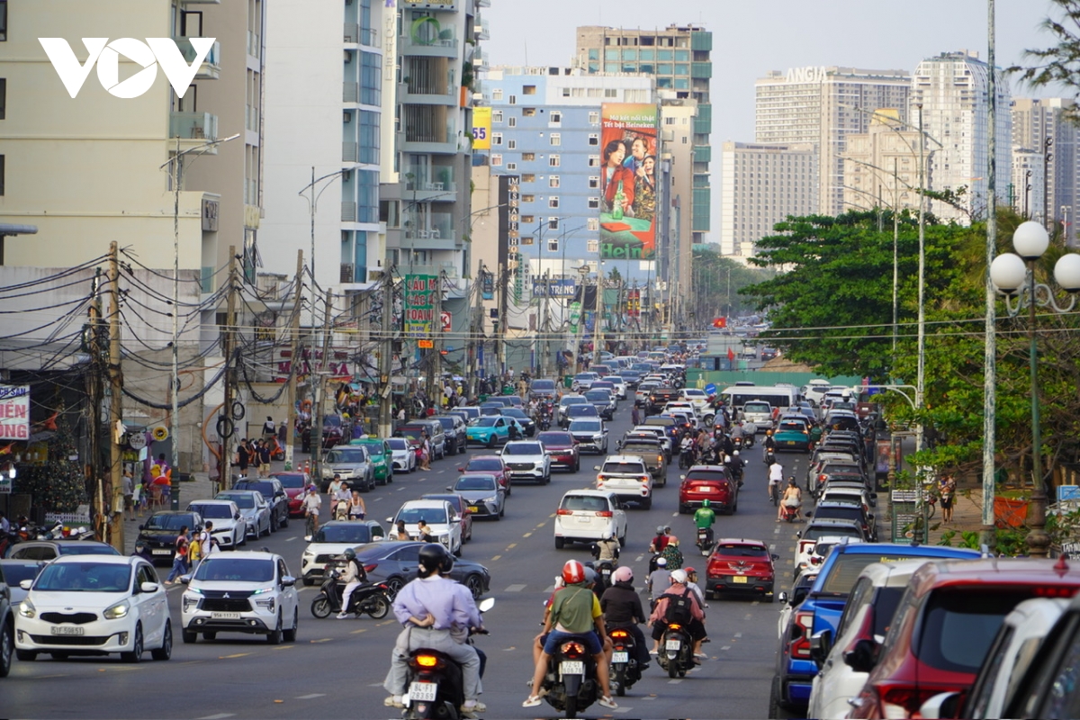 Các trục đường chính và tuyến ven biển thường xuyên trong tình trạng đông đúc, các phương tiện giao thông nối dài.
