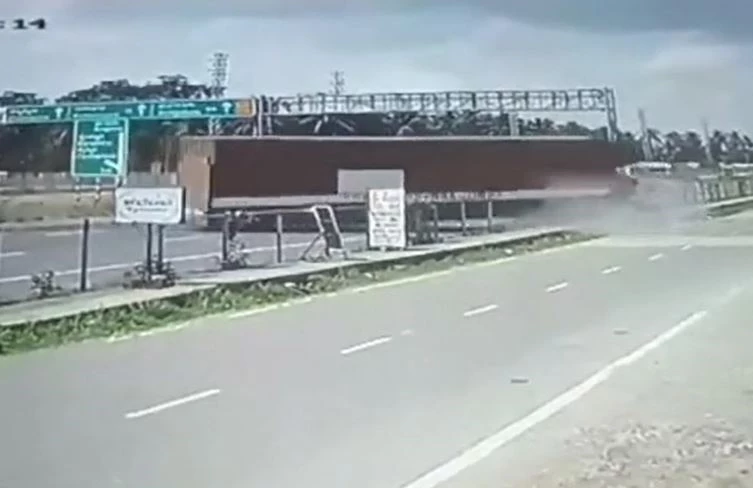 Theo hình ảnh từ camera giám sát, chiếc xe container đang di chuyển ở làn thứ 3 trên tuyến cao tốc 10 làn từ Bengaluru đến Mysuru thì bất ngờ mất kiểm soát.