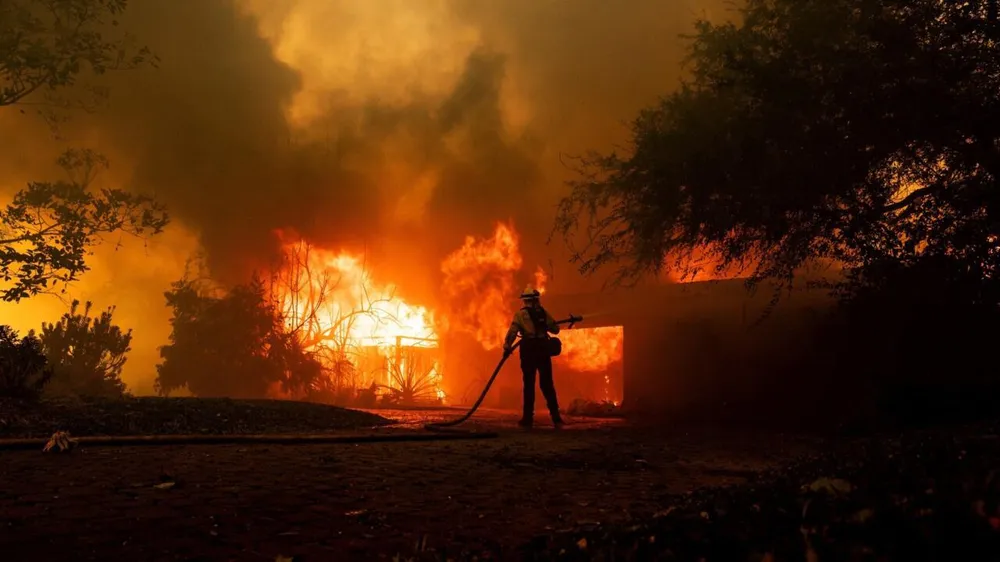 Lính cứu hỏa cố gắng kiểm soát ngọn lửa cháy rừng ở bang California (Mỹ) vào tháng 11-2024. Ảnh: Etienne Laurent/AFP