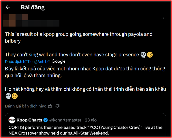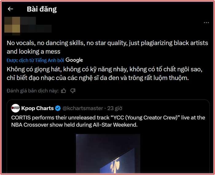 Mới đây, nhóm nhạc nam CORTIS trực thuộc HYBE đã trở thành tâm điểm tranh cãi khi trình diễn ca khúc chưa phát hành mang tên YCC (Young Creator Crew) tại sự kiện NBA Crossover.