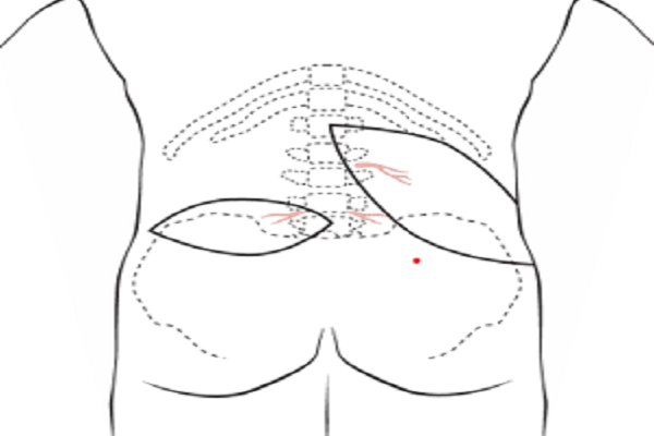 Vạt nhánh xuyên động mạch thắt lưng được thiết kế theo đường trục ngang, hướng từ đường giữa sau xuống trước trên mào chậu cột sống - Ảnh: minh họa