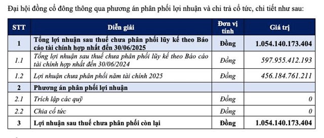Về phương án phân phối lợi nhuận niên độ 2024 - 2025, doanh nghiệp dự kiến không tiến hành trích lập các quỹ và không chia cổ tức.