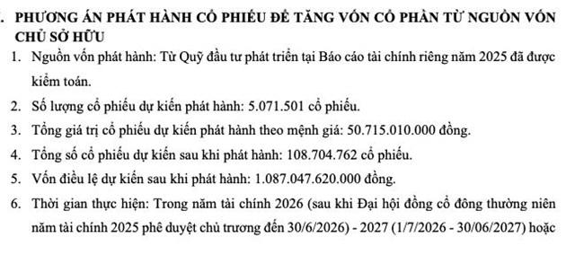 Nguồn vốn phát hành lấy từ quỹ đầu tư phát triển tại báo cáo tài chính riêng năm 2025 đã được kiểm toán.