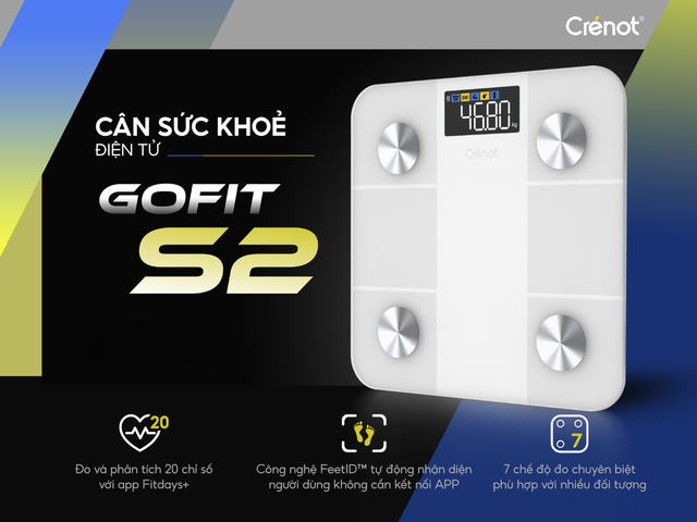 Đây là phiên bản cao cấp hơn của Crenot Gofit S2 cũng là lựa chọn nổi bật trong phân khúc dưới 1 triệu đồng, sở hữu màn hình màu 4.8 inch siêu lớn ngay trên mặt cân, cho phép hiển thị ngay 9 chỉ số cơ thể sau khi cân mà không cần kết nối với ứng dụng điện thoại – mang lại trải nghiệm nhanh chóng và tiện lợi cho người dùng.