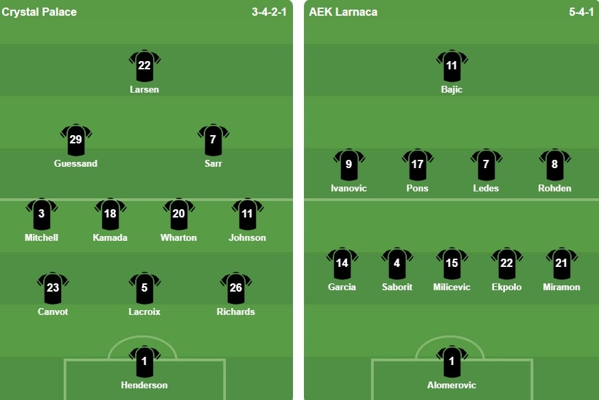 Để tìm kiếm sự đột biến, ban huấn luyện Crystal Palace đã tung vào sân hàng loạt quân bài tấn công như Jean-Philippe Mateta và Yéremi Pino. Dù vậy, các trung vệ Hrvoje Milicevic và Enric Saborit bên phía AEK Larnaca đã có một ngày thi đấu lăn xả, bẻ gãy mọi nỗ lực không chiến lẫn bóng ngắn của đội chủ nhà. Về phía đội khách, họ gần như không có ý định chơi đôi công, những nỗ lực lẻ loi của Enzo Cabrera ở phía trên chỉ nhằm mục đích kéo giãn đội hình đối phương và giảm tải áp lực cho hàng thủ.