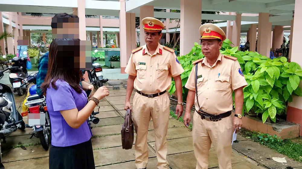 Ngoài ra, tại các buổi kiểm tra, lực lượng CSGT cũng nhắc nhở nhiều trường hợp học sinh đội nón bảo hiểm không đúng quy định. Các trường hợp vi phạm đều đã được lực lượng CSGT tuyên truyền, vận động, yêu cầu ký cam kết không tái phạm.