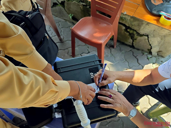 Quá trình làm nhiệm vụ, Cảnh sát sử dụng máy quay chuyên dụng ghi lại kết quả kiểm tra vi phạm nồng độ cồn.