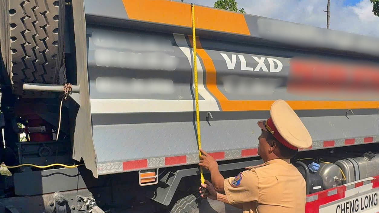 Tại khu vực Cà Mau và Bạc Liêu, lực lượng Cảnh sát giao thông dừng phương tiện để kiểm tra thực tế bằng thước dây, đo kích thước thành thùng, gồm chiều dài và chiều cao thùng xe, đồng thời đối chiếu với thông số kỹ thuật ghi trong giấy chứng nhận kiểm định.