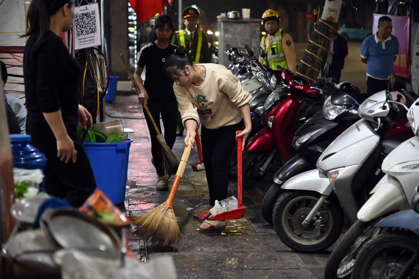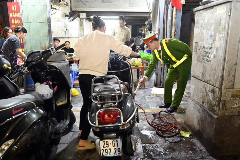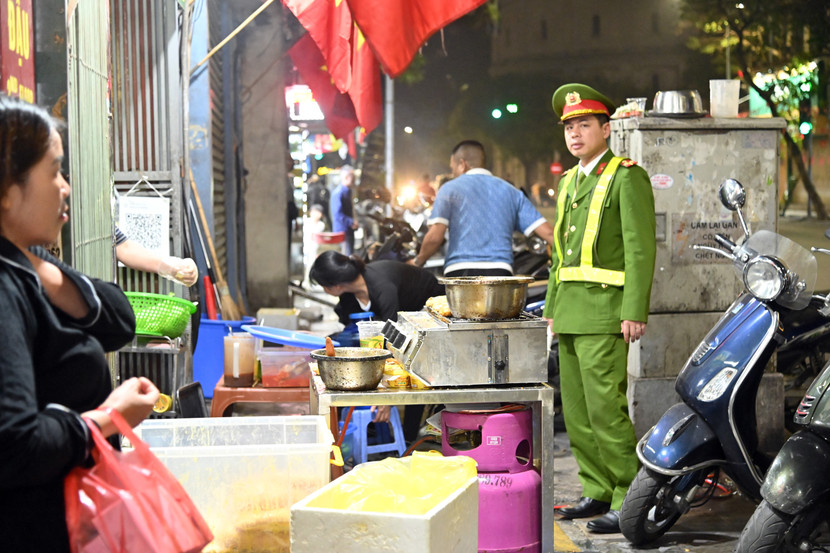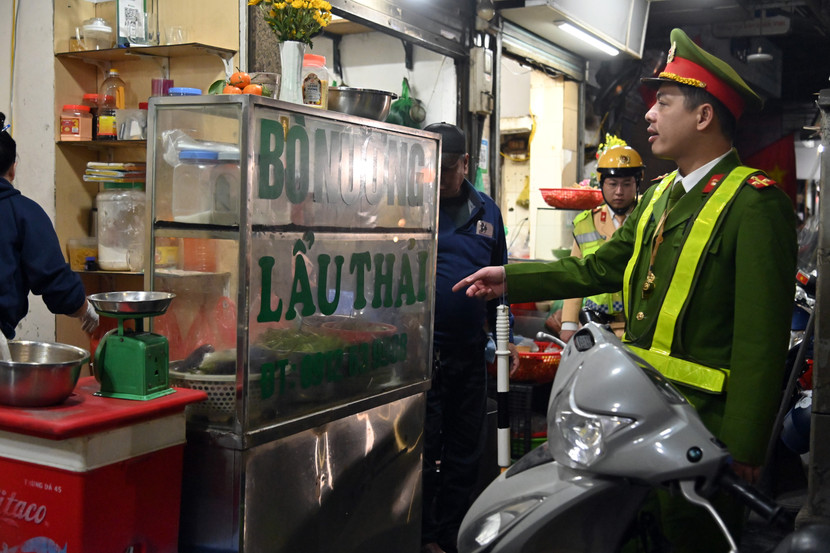 Lực lượng phối hợp này đã tuần tra nhắc nhở các hộ kinh doanh dọc các con phố sầm uất như Hàng Đậu, Hàng Khoai, khu vực quan chợ Đồng Xuân
