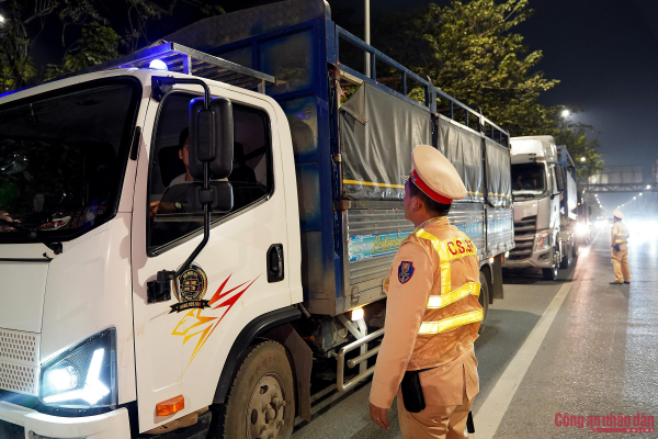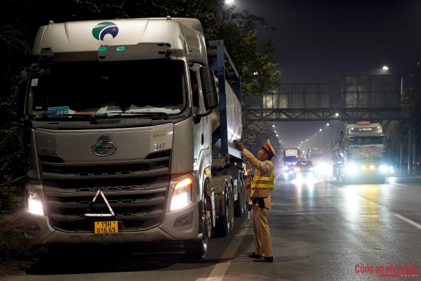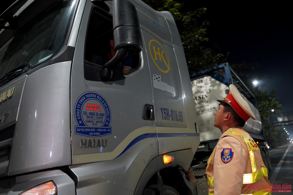 Quá trình tuần tra, chia sẻ với PV Báo CAND đang theo chân tổ công tác làm nhiệm vụ, Thiếu tá Ngô Văn Tâm cho biết, bắt đầu ngày 1/1/2026, Sở Xây dựng Hà Nội tiến hành thí điểm phương án hạn chế xe tải có khối lượng toàn bộ từ 10 tấn trở lên, xe container và xe đầu kéo trên Đại lộ Thăng Long và Quốc lộ 32 theo hướng đi về đường Vành đai 3. Thời gian hạn chế vào buổi sáng từ 6h đến 9h và buổi chiều từ 16h đến 20h. Thực tế quá trình triển khai thí điểm, tình hình trật tự an toàn giao thông trên tuyến đã có những bước chuyển biến tích cực.