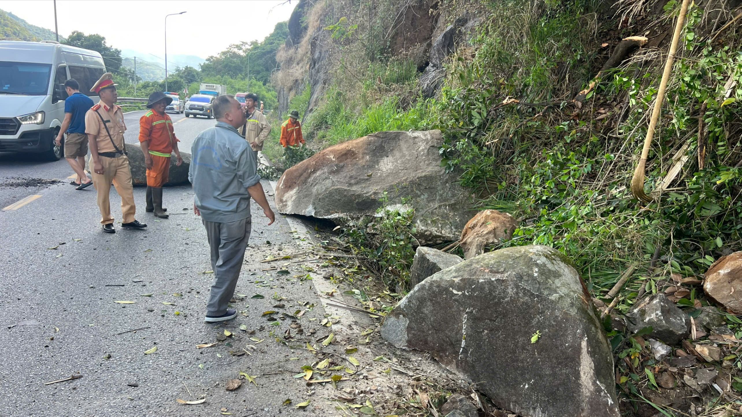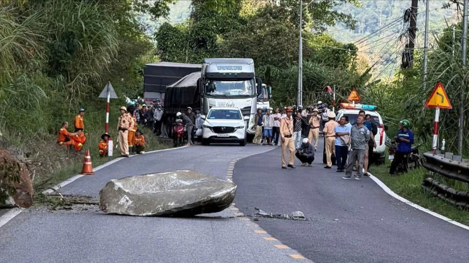 Đến chiều cùng ngày, các tảng đá đã được di dời, giao thông qua khu vực thông suốt.