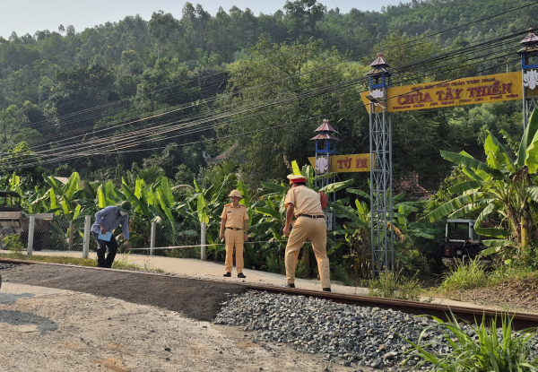 Trạm CSGT Tuy An kiểm tra hiện trường vụ tai nạn tại km 1174+312 trên tuyến đường sắt qua xã Ô Loan, tỉnh Đắk Lắk ngày 12/4/2026.
