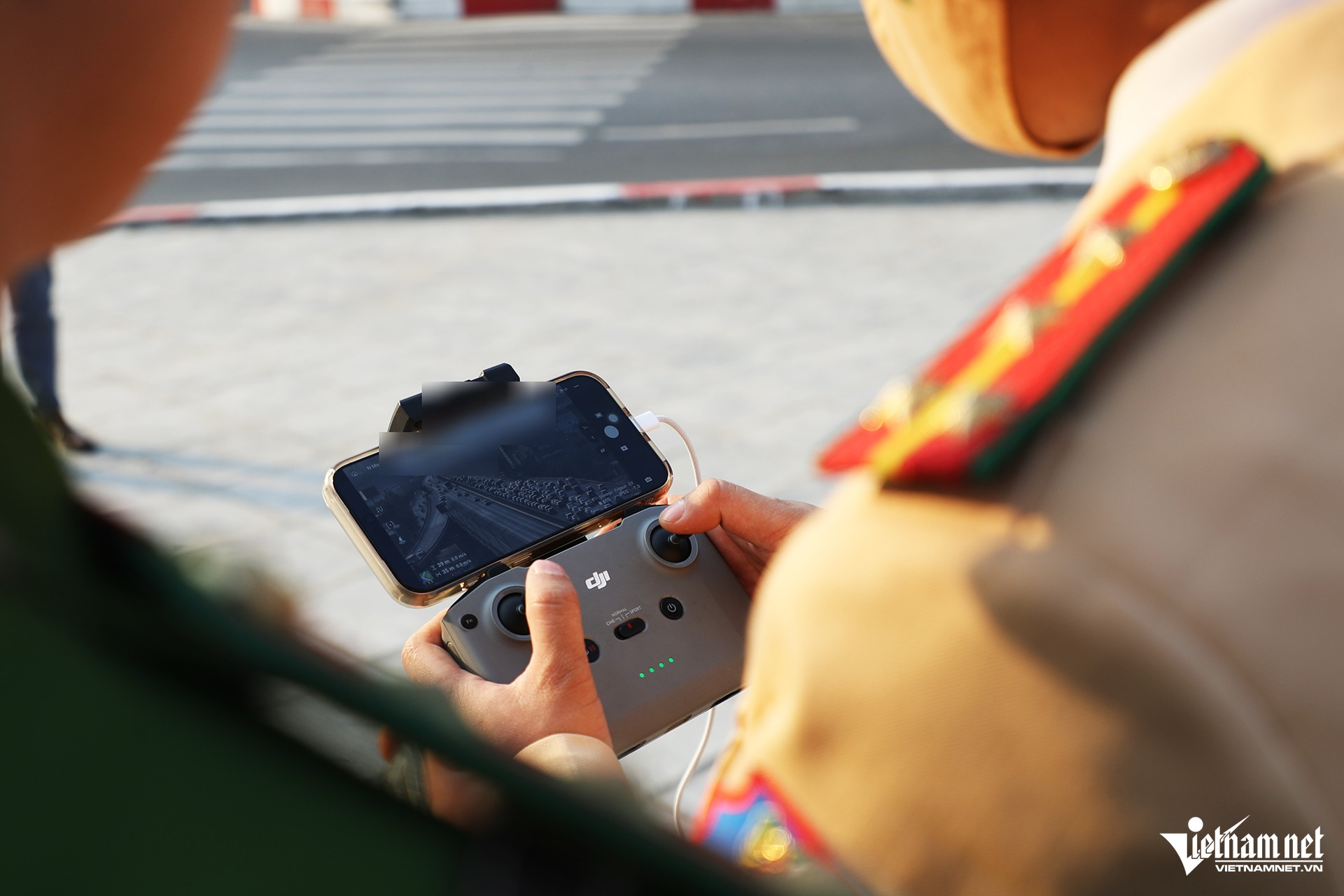 CSGT sử dụng flycam để quan sát tại các tuyến đường cửa ngõ, vành đai… Khi phát hiện ùn tắc hoặc va chạm giao thông, lực lượng chức năng dùng bộ đàm thông báo cho tổ công tác phân luồng từ xa.