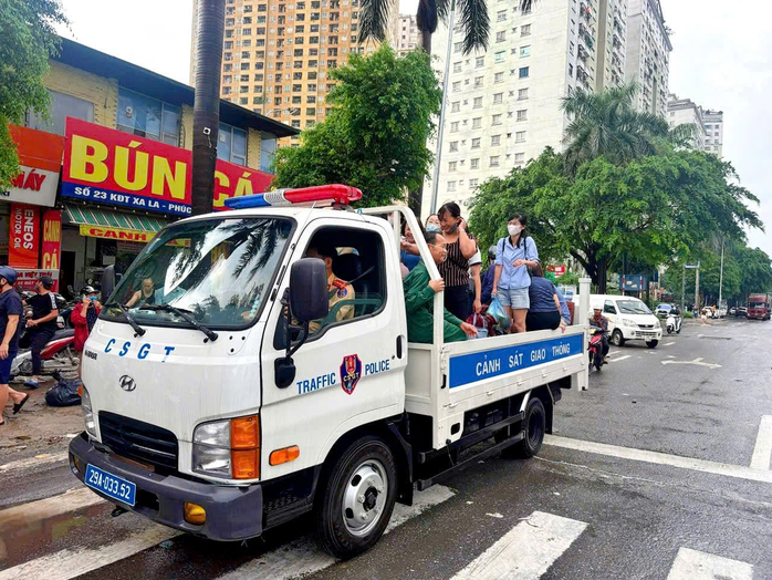 Điển hình, tại khu vực ngã ba đường Cầu Bươu - Xa La, nước ngập sâu 30-50 cm, đoạn đường ngập kéo dài hơn 300 m từ gần Bệnh viện K cơ sở Tân Triều đến chung cư CT5 khiến nhiều người và xe máy di chuyển khó khăn. Đội CSGT đường bộ số 7 đã sử dụng ô tô đặc chủng chở người dân vượt qua điểm ngập.