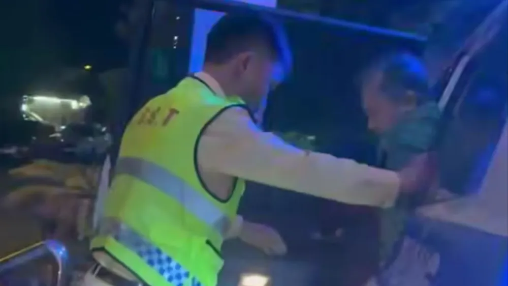 CSGT dùng xe chuyên dụng đưa người đàn ông bị rắn độc cắn đi cấp cứu trong đêm.