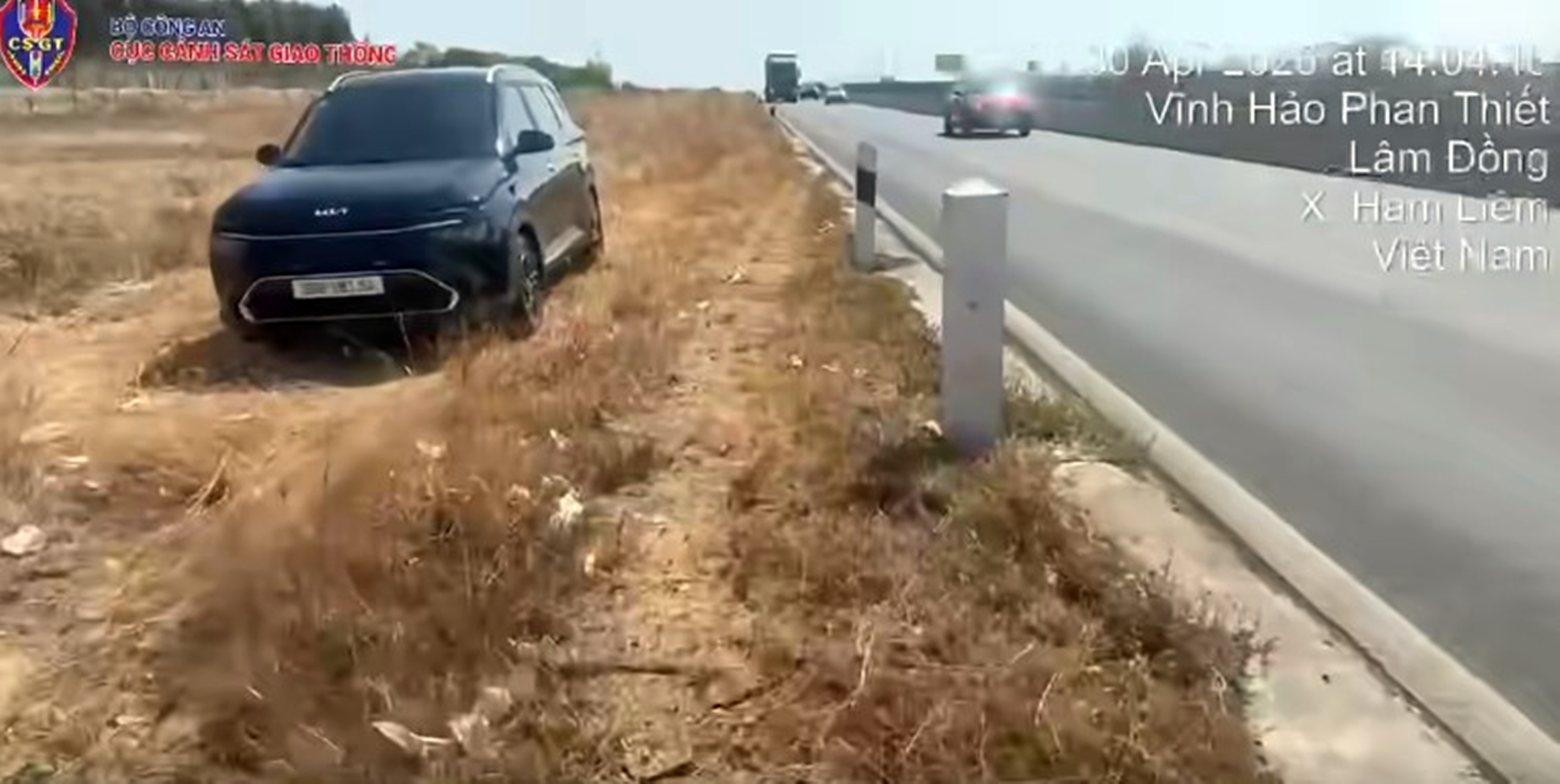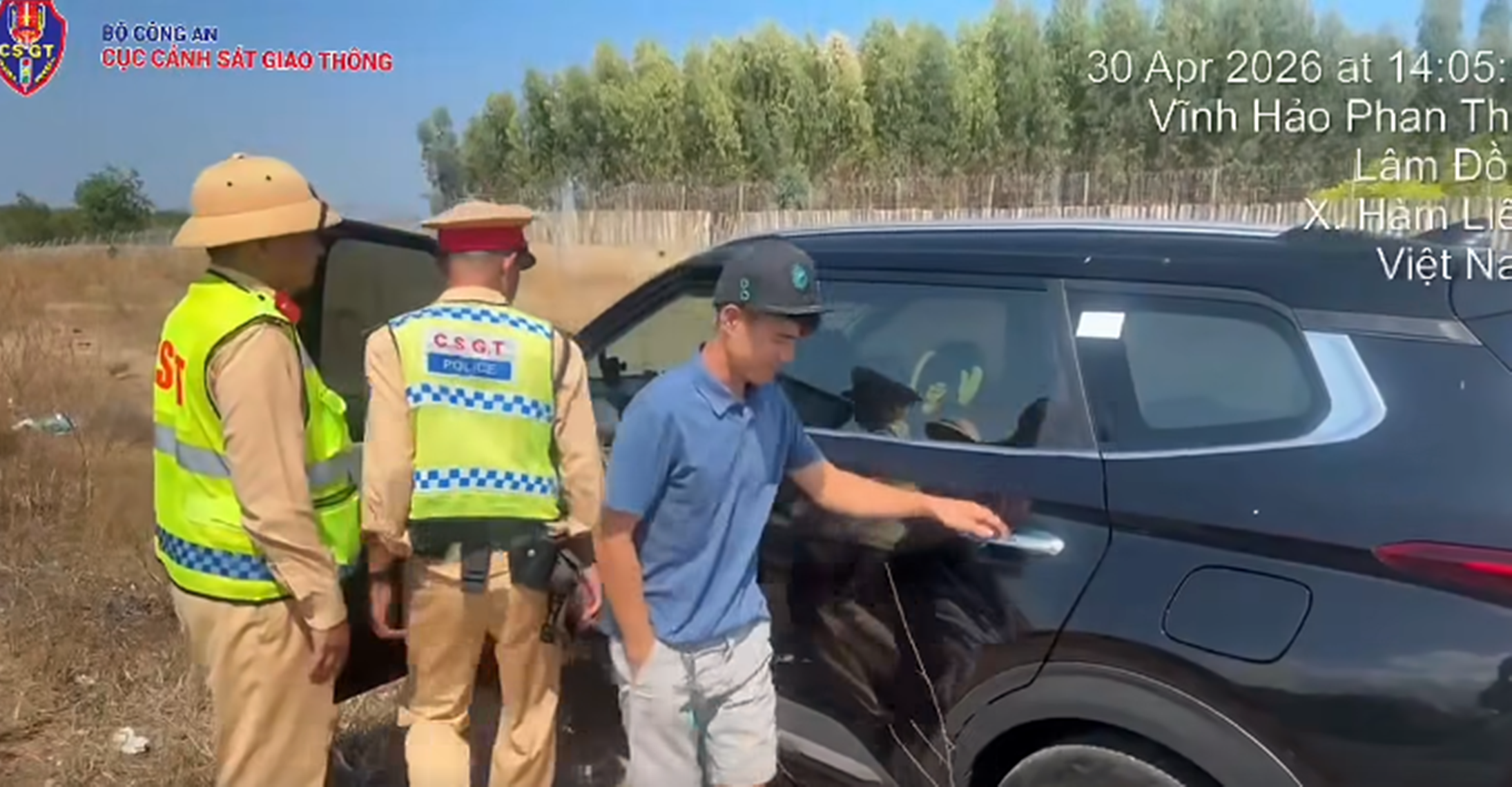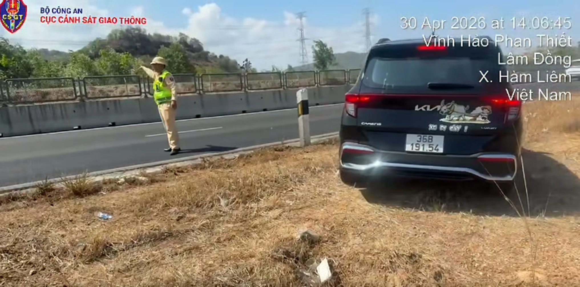 Khoảng 14 giờ chiều nay 30-4, trong quá trình tuần tra lưu động trên tuyến cao tốc Vĩnh Hảo – Phan Thiết, Tổ CSGT thuộc Đội CSGT đường bộ cao tốc số 6, Phòng 6, Cục CSGT phát hiện ô tô biển số 36B-191.. do một nam thanh niên điều khiển, chở theo một người, đang dừng tại hành lang an toàn đường cao tốc thuộc địa phận xã Hàm Liêm, tỉnh Lâm Đồng.