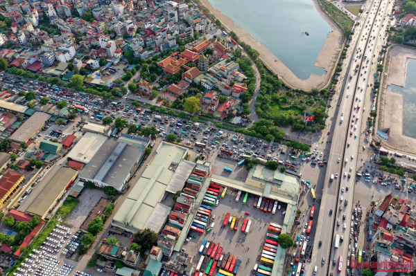 Cửa ngõ phía Nam Thủ đô chiều 29/4 nhìn từ trên cao có thể nhận thấy rõ mật độ phương tiện rất đông, đặc biệt là tại khu vực xung quanh bến xe khách.