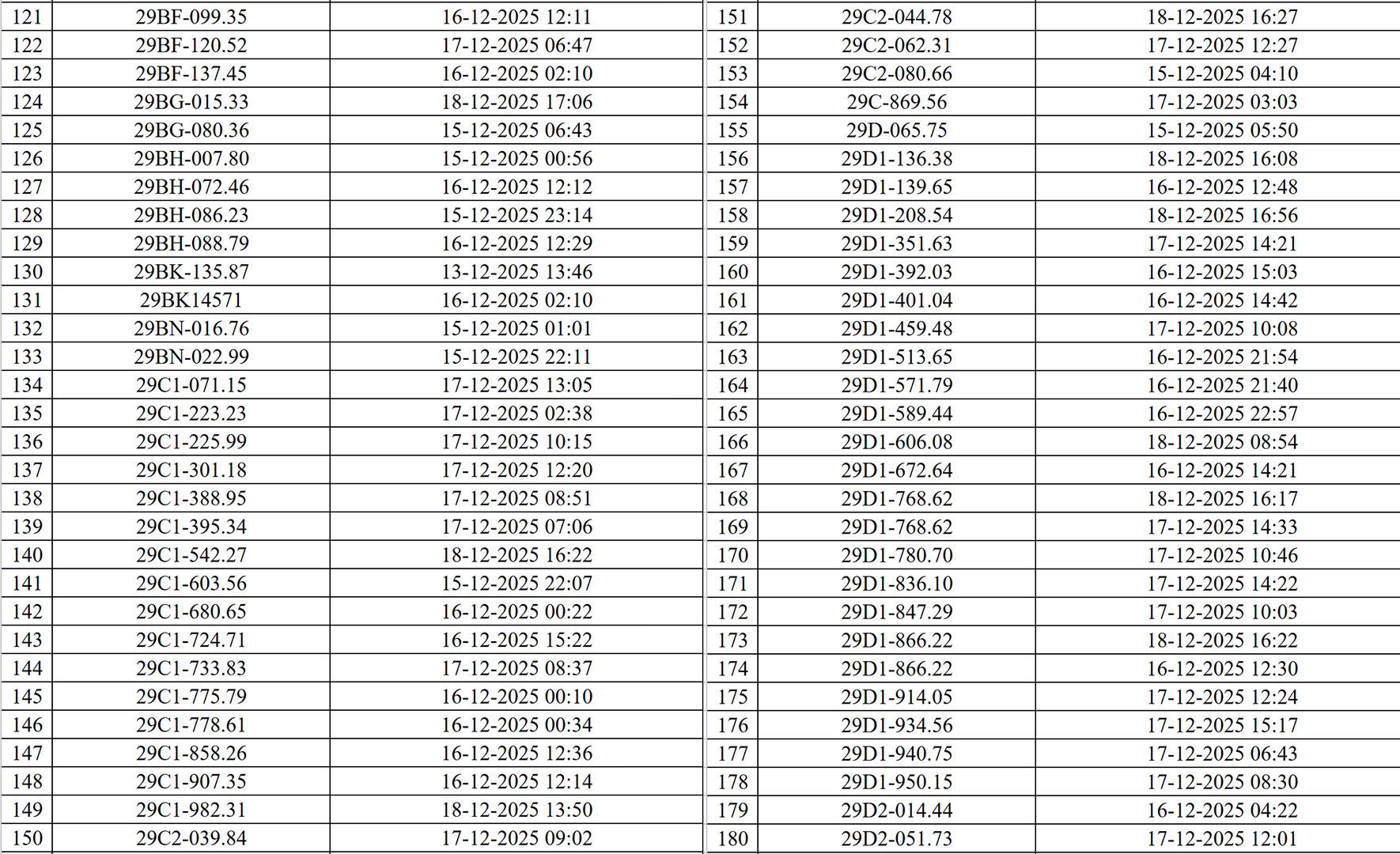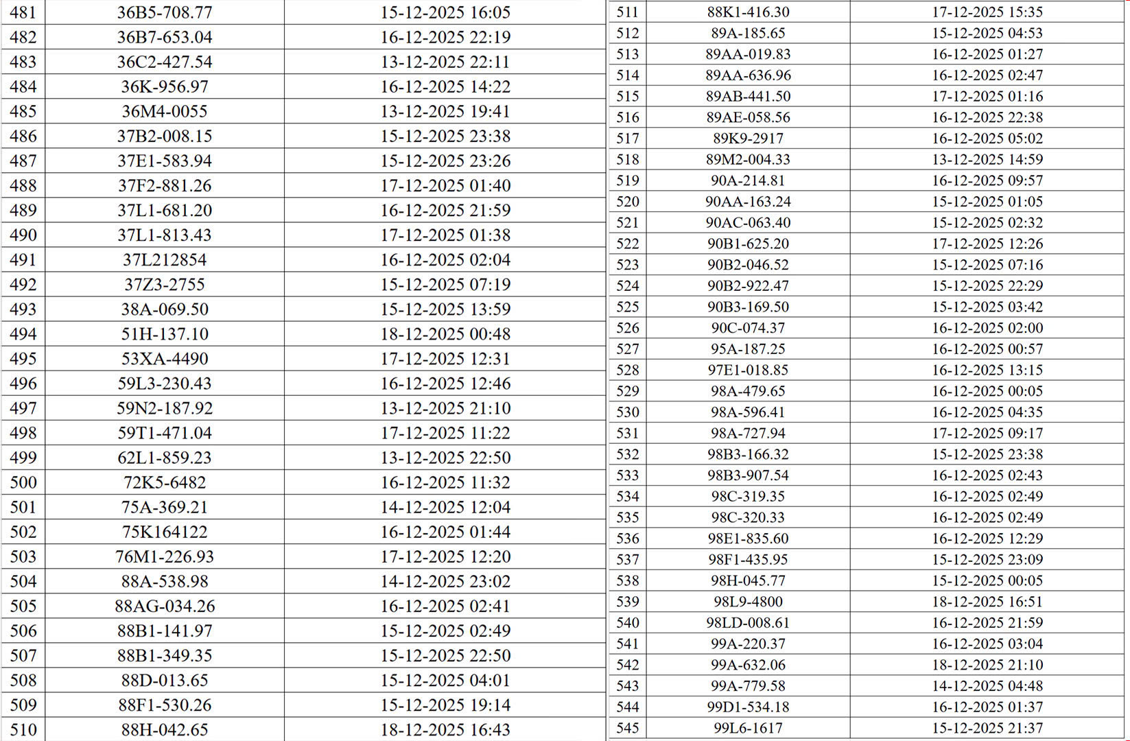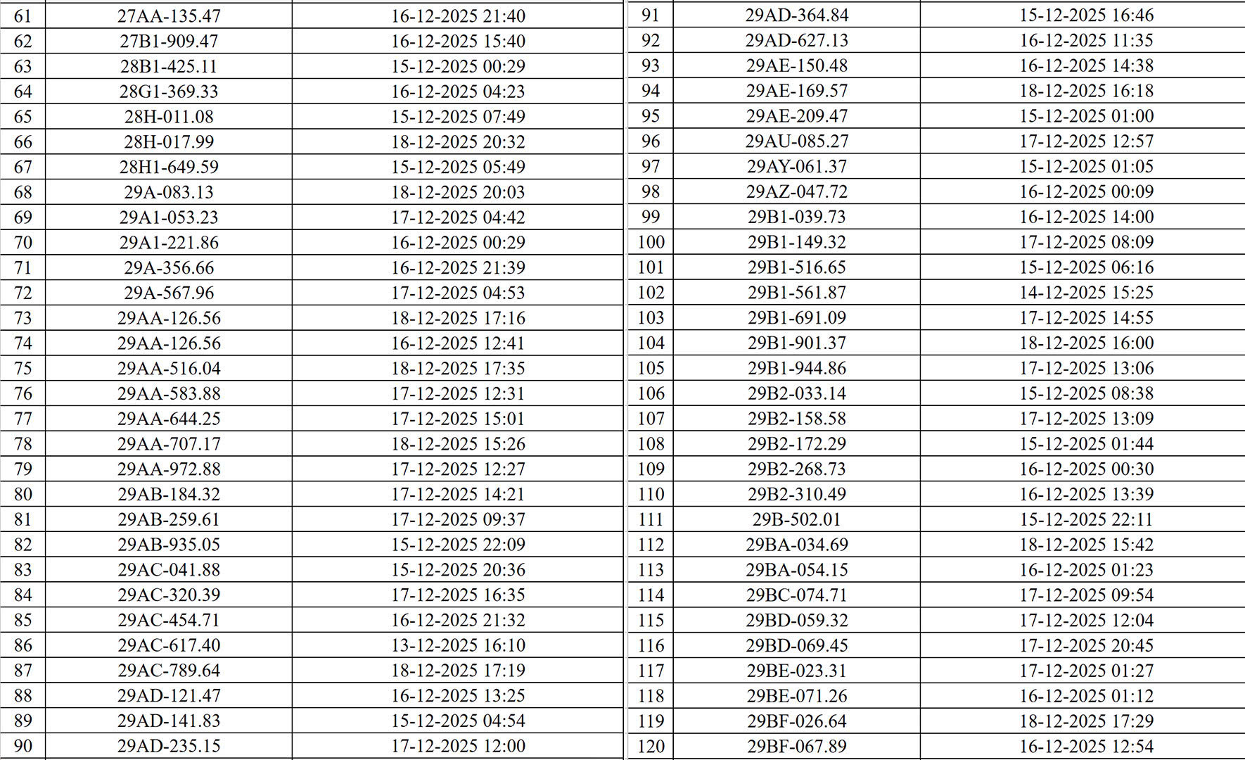 Danh sách chi tiết biển số xe vi phạm giao thông từ ngày 13/12 bị camera AI phạt nguội: