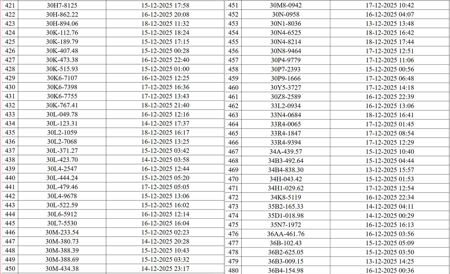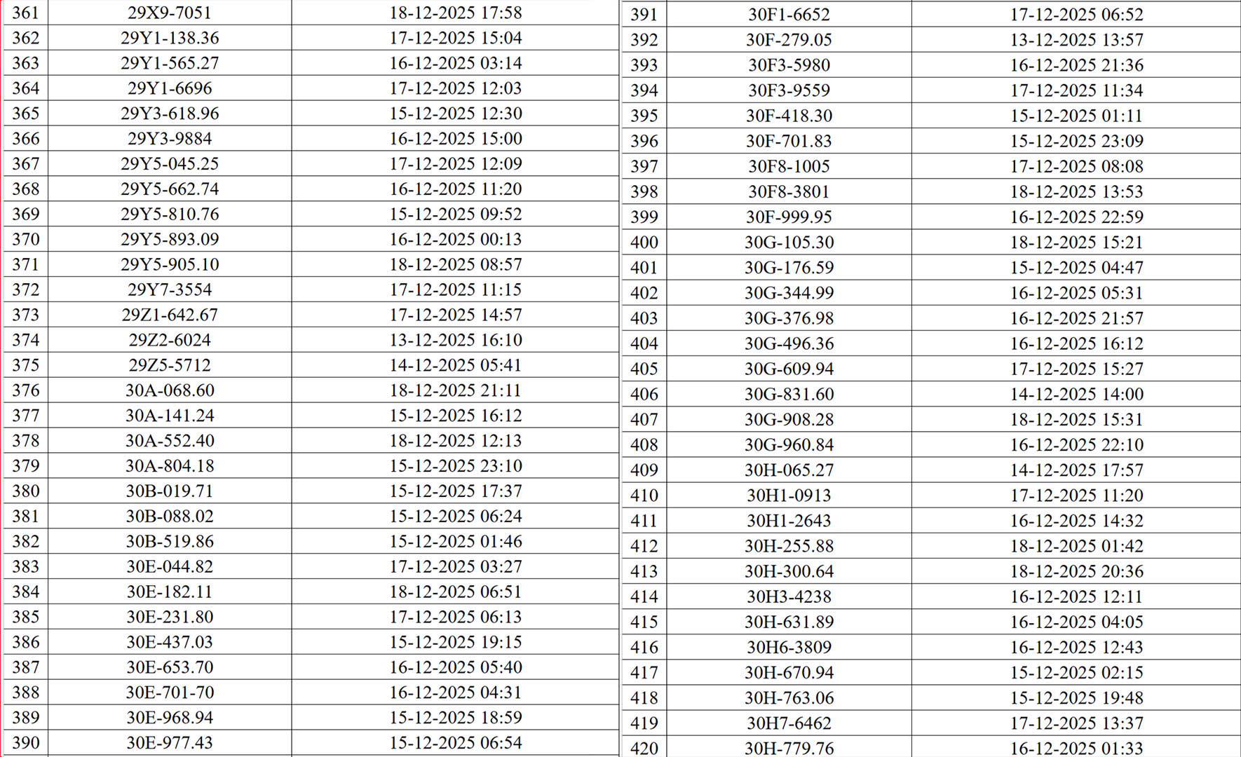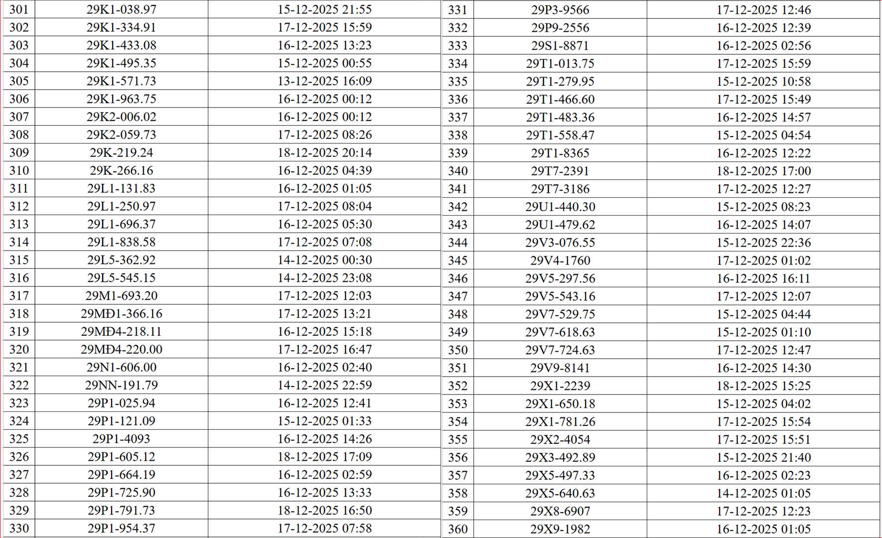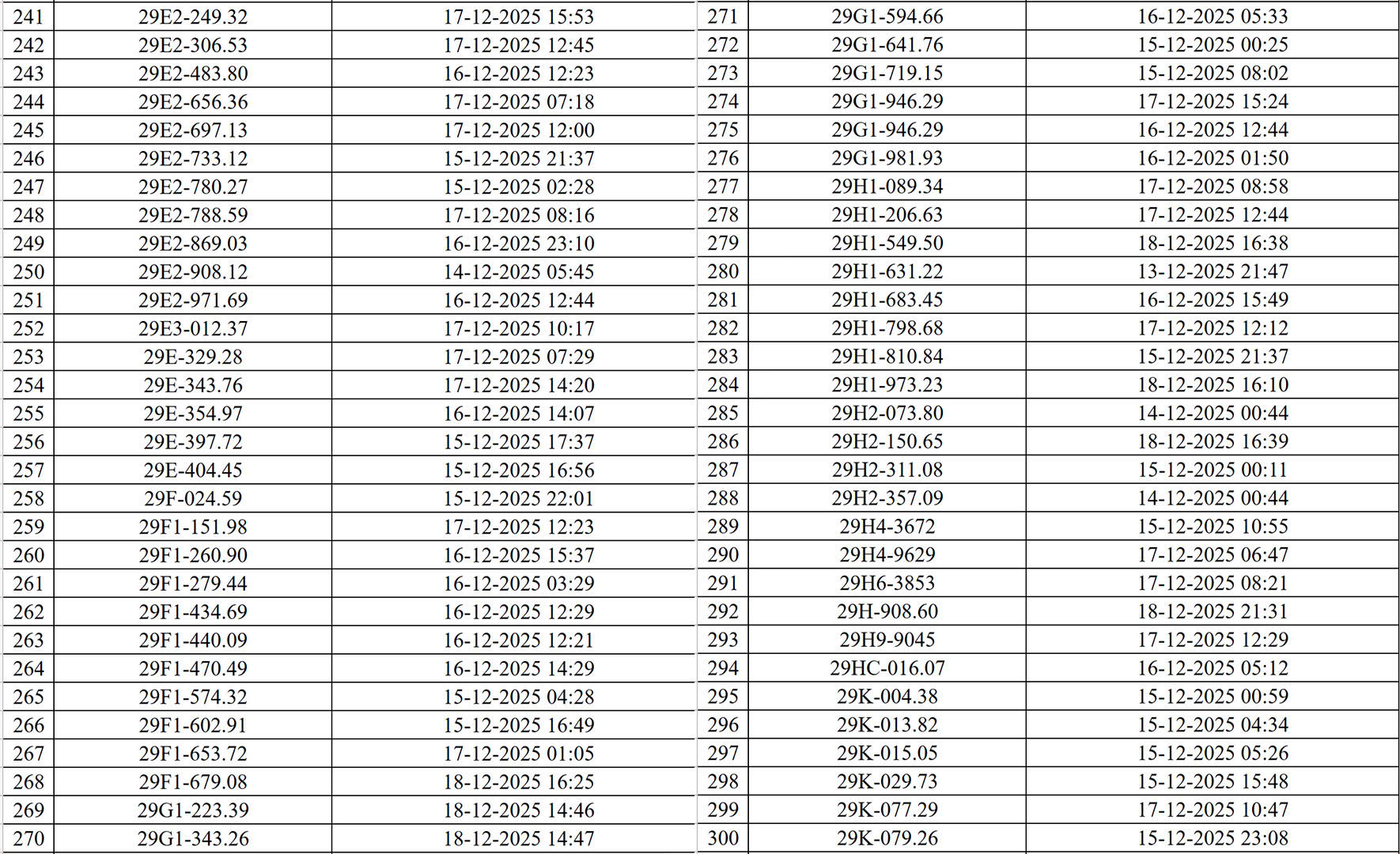Danh sách chi tiết biển số xe vi phạm giao thông từ ngày 13/12 bị camera AI phạt nguội: