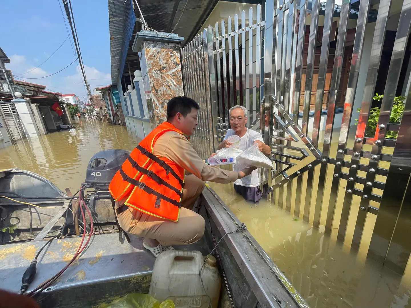 Lực lượng chức năng cũng hỗ trợ cung cấp lương thực, nước uống cho những người còn ở lại