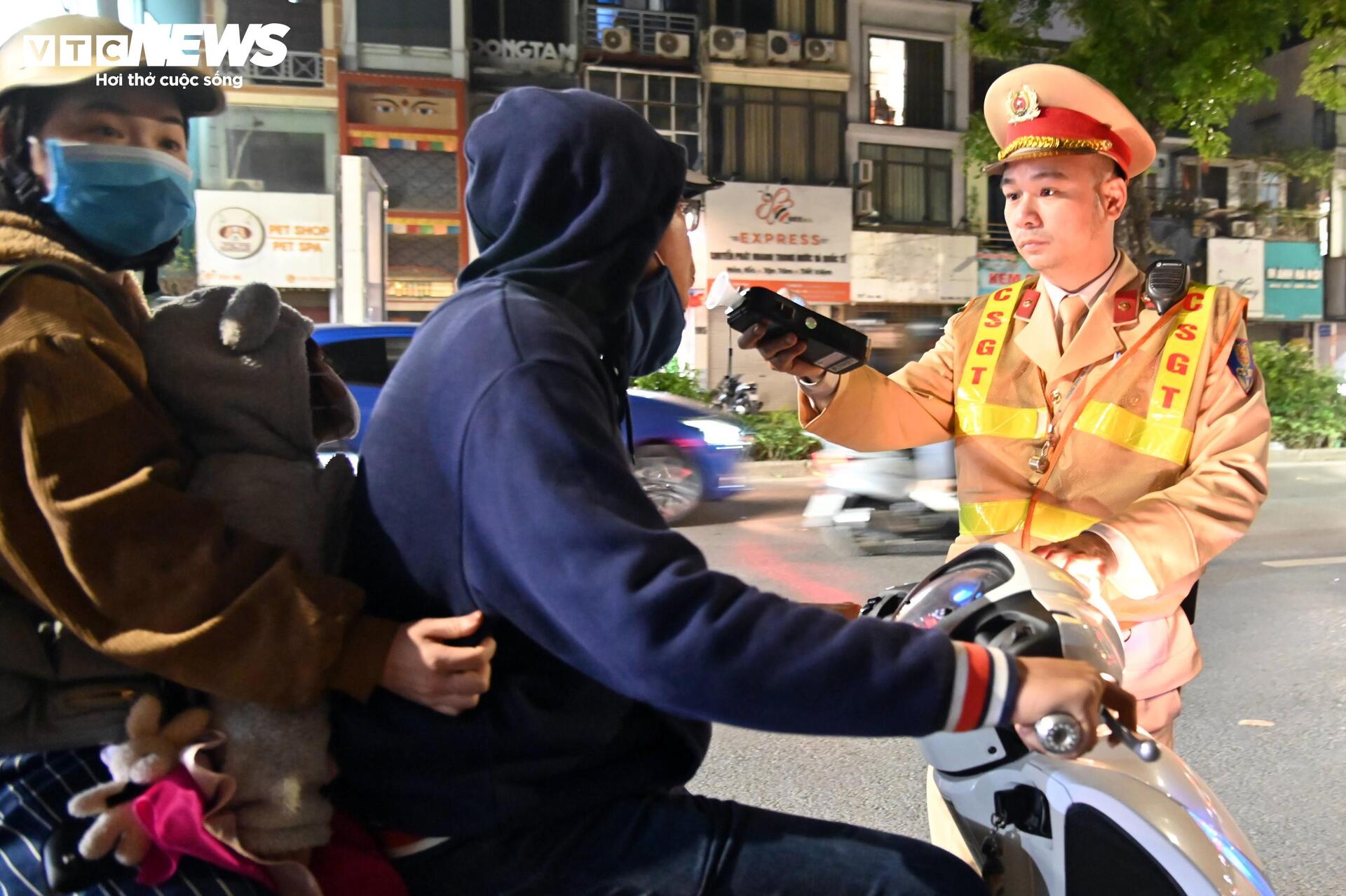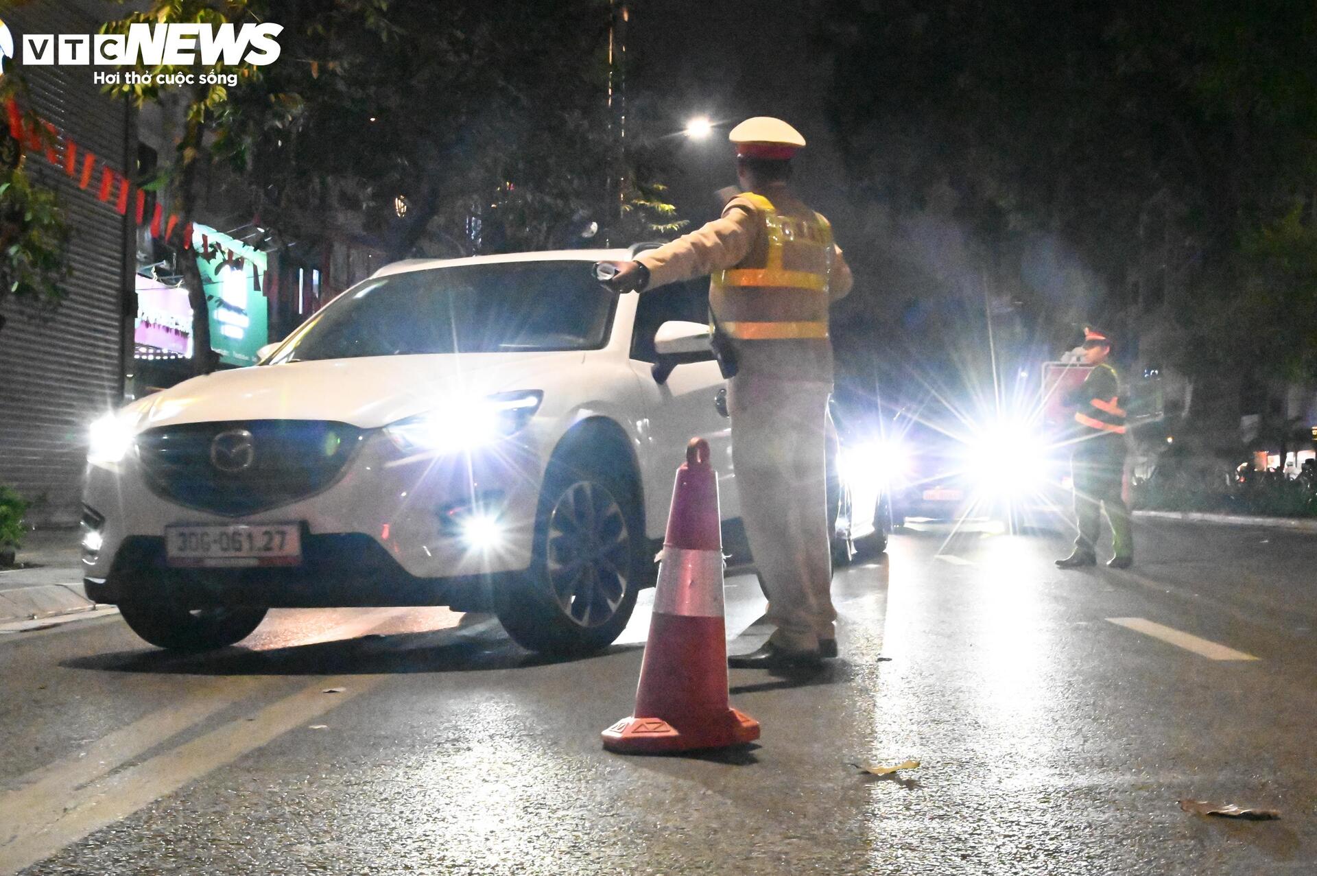 Tối 13/2 (26 Tết), Cục Cảnh sát giao thông - Bộ Công an phối hợp cùng Đội Cảnh sát giao thông đường bộ số 2 - Công an TP Hà Nội và công an phường tổ chức chốt kiểm tra nồng độ cồn đối với người điều khiển phương tiện trên tuyến đường Kim Mã, Hà Nội.