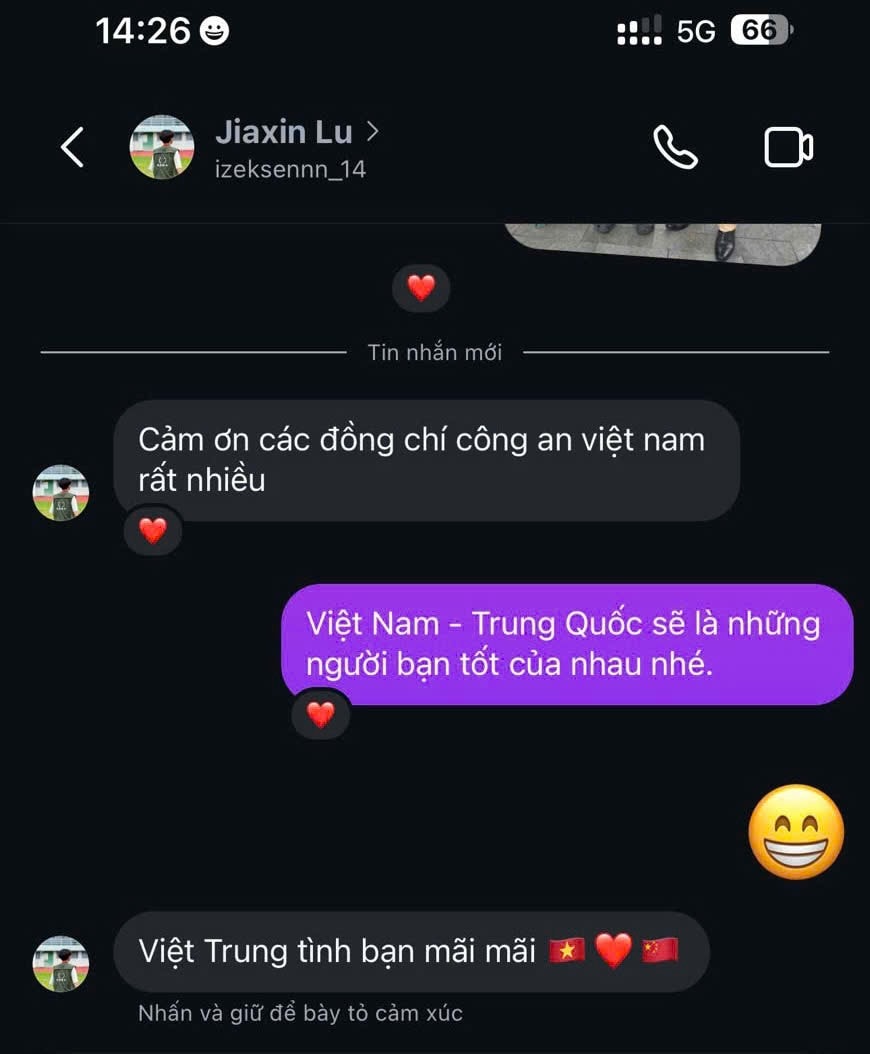 Xúc động trước tinh thần trách nhiệm, tận tụy của cán bộ, chiến sĩ CSGT Hà Nội, anh Lu Jiaxin đã viết thư cảm ơn gửi tới đơn vị, bày tỏ sự trân trọng và cảm phục trước hành động đẹp của lực lượng CSGT Việt Nam.